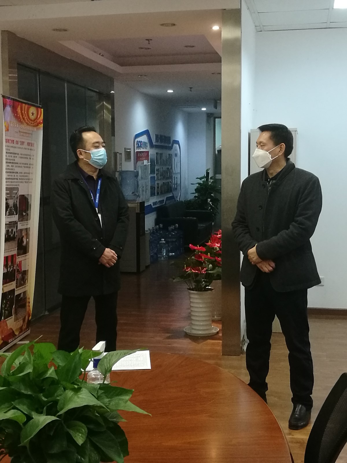 檢查組一行查驗(yàn)了公司體溫監(jiān)測登記表、員工個人防護(hù)、公共區(qū)域通風(fēng)消毒、防疫物資儲備、防控標(biāo)識布置、防疫政策文件宣貫及疫情防控宣傳工作等方面的開展情況。