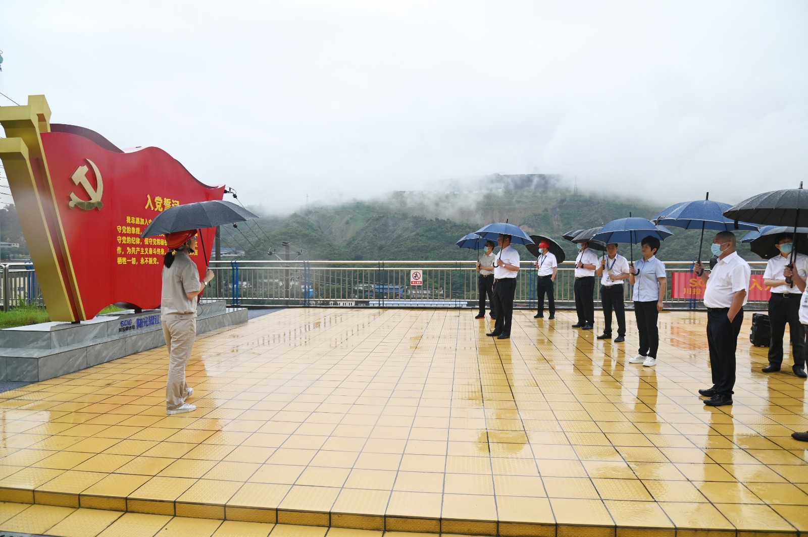 會后,李文志一行前往銀江水電站施工變電站觀景平臺,參觀了銀江水電站施工現(xiàn)場和“七色陽光大黨建”宣傳陣地。