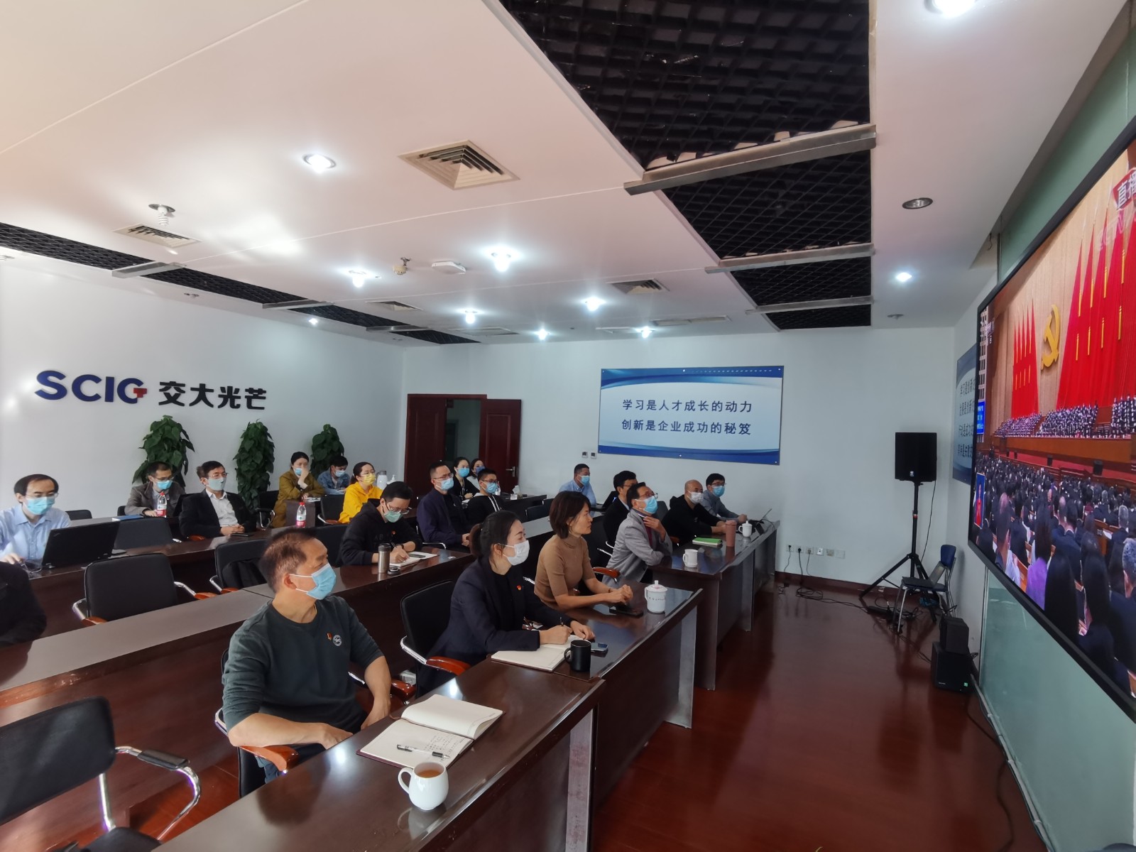 川投能源班子成員與本部各部門(mén)負(fù)責(zé)人、黨員代表一同收看了黨的二十大開(kāi)幕會(huì)盛況。