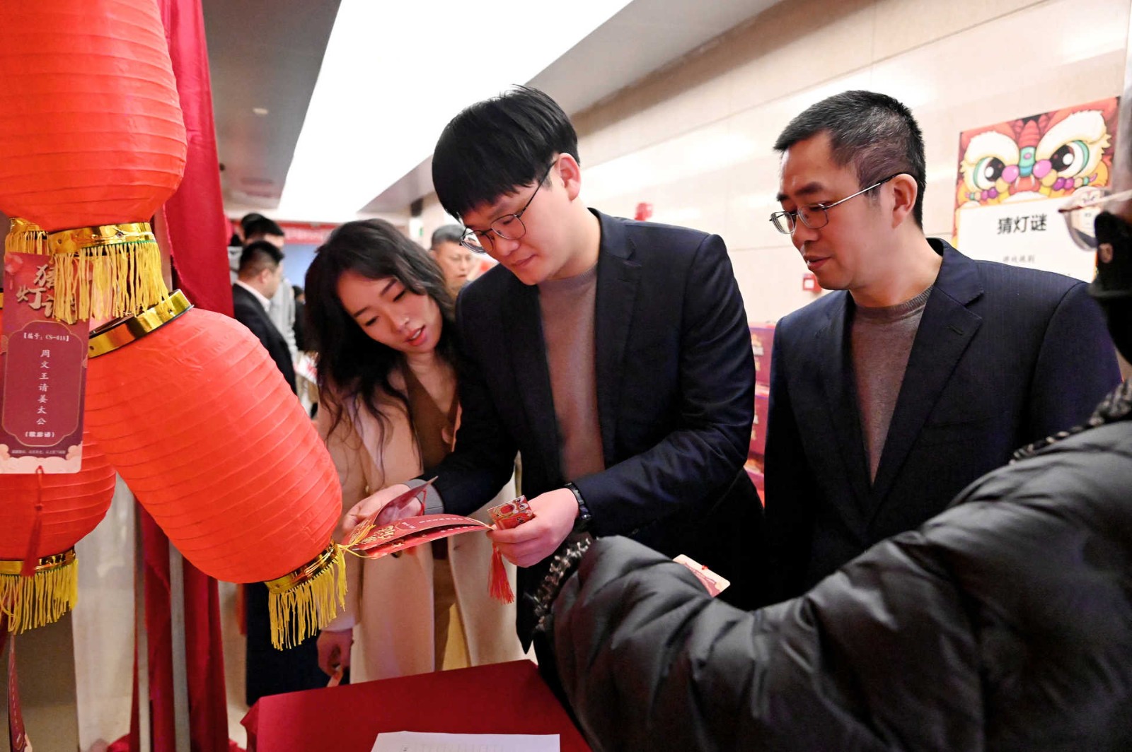 此次活動(dòng)采用游園方式,現(xiàn)場設(shè)置了民俗體驗(yàn)區(qū)、非遺手作區(qū)、民俗體驗(yàn)區(qū)、新春互動(dòng)區(qū)、游戲互動(dòng)區(qū)等5個(gè)活動(dòng)區(qū)域,涵蓋猜燈謎、剪窗花、做龍燈、滾滾樂等8個(gè)活動(dòng)。活動(dòng)現(xiàn)場每一處都用心裝扮,火紅的中國燈籠、精美的傳統(tǒng)對(duì)聯(lián)伴隨濃郁的新年味道彌散在會(huì)場的每一個(gè)角落。大家爭先恐后、玩勁十足,盡享新春的熱鬧與喜悅!有的圍著掛著紅線繩的燈謎卡片,仔細(xì)閱讀謎語,認(rèn)真思考,沉浸在猜謎的樂趣中;有的圍在四川剪紙非遺傳承人莊叢燦老師周圍,一邊聆聽著剪紙的技巧,一邊仔細(xì)修理邊角,用心精雕細(xì)琢;有的在學(xué)習(xí)制作龍燈,他們展現(xiàn)出極高的熱情和創(chuàng)造力,根據(jù)自己的想象,給龍燈增添了各種裝飾,如彩紙、亮片等,使得每個(gè)龍燈都獨(dú)具特色。