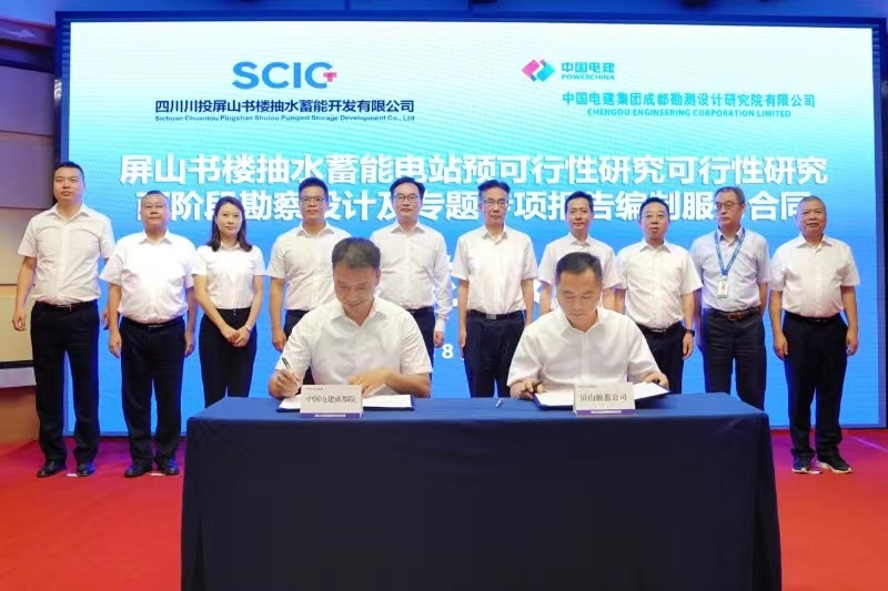 8月26日,川投能源所屬四川川投屏山書樓抽水蓄能開發(fā)有限公司(以下簡稱“川投屏山抽蓄公司”)與中國電建集團成都勘測設(shè)計研究院有限公司(以下簡稱“中國電建成都院”)在成都舉行《屏山書樓抽水蓄能電站預(yù)可行性研究、可行性研究兩階段勘察設(shè)計及專題專項報告編制服務(wù)合同》簽約儀式。川投集團黨委書記、董事長,川投能源董事長吳曉曦,中國電建成都院黨委書記、董事長何彥鋒出席并見證簽約;川投集團副總經(jīng)理張昊,中國電建成都院黨委委員、副總經(jīng)理趙曉峰出席并致辭;川投集團副總經(jīng)理肖長青出席并主持儀式。
