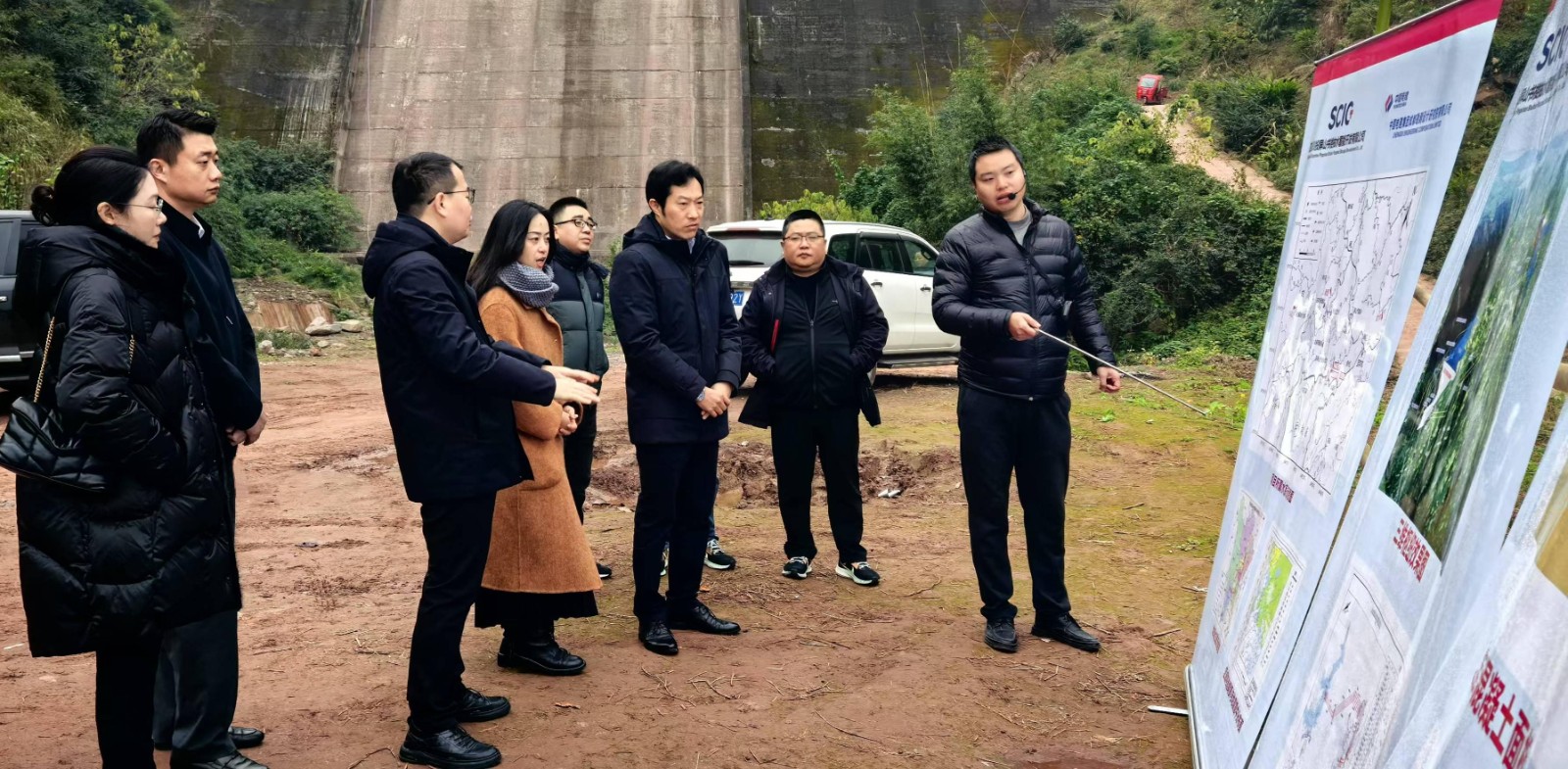 會(huì)前,戴月洪一行前往宜賓屏山書樓電站項(xiàng)目進(jìn)行現(xiàn)場(chǎng)調(diào)研,在下水庫(kù)壩址位置聽取了項(xiàng)目總體布置情況匯報(bào),在項(xiàng)目補(bǔ)水點(diǎn)和保寧村堆料場(chǎng)進(jìn)行了現(xiàn)場(chǎng)踏勘,詳細(xì)了解了項(xiàng)目現(xiàn)場(chǎng)工作開展情況。