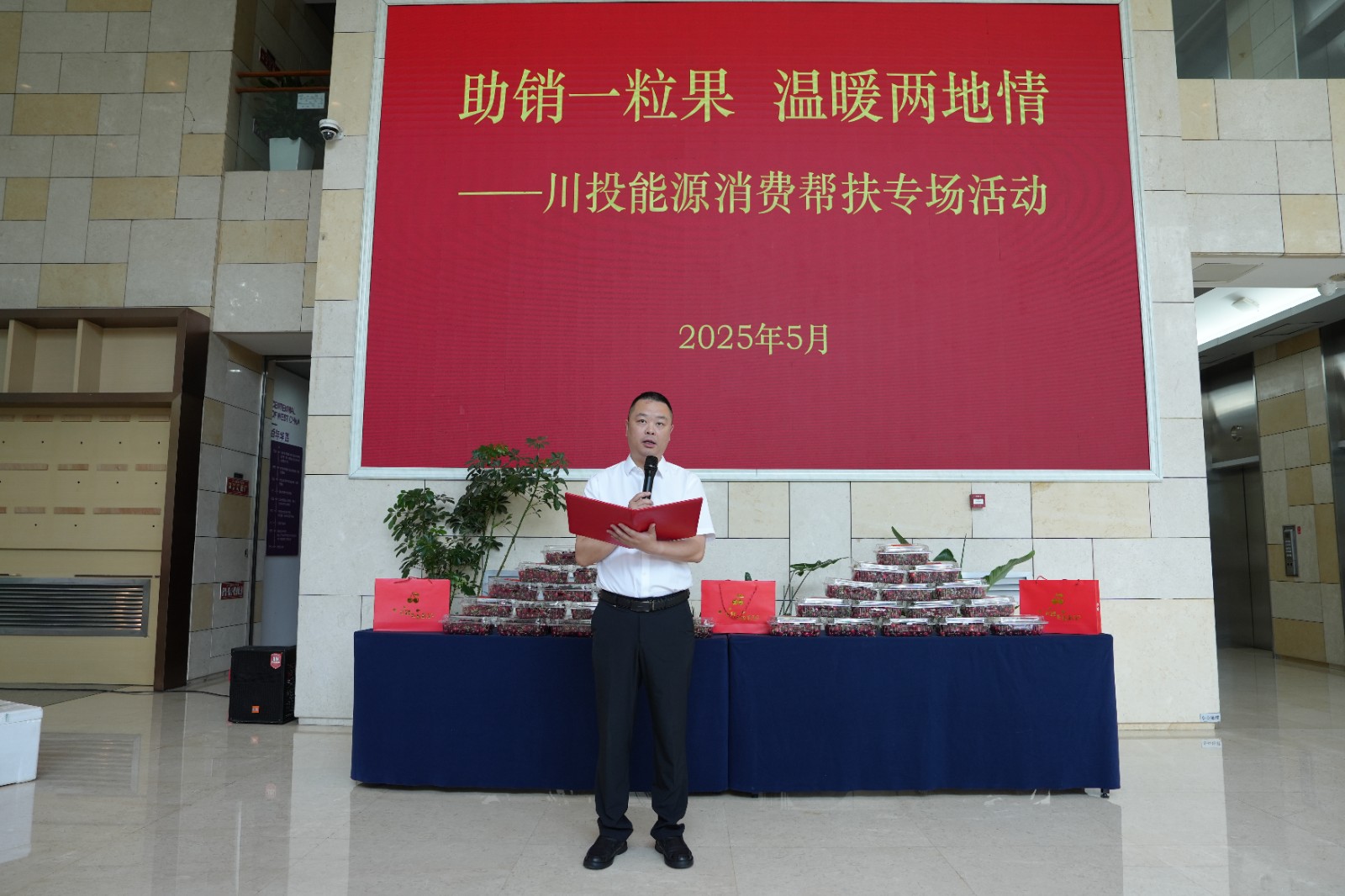 為鞏固拓展托底性幫扶工作成效,在助力鄉(xiāng)村振興中彰顯省屬國(guó)企的責(zé)任擔(dān)當(dāng),5月7日,川投能源與結(jié)對(duì)幫扶的儀隴縣馬鞍鎮(zhèn)、福臨鄉(xiāng)在成都舉辦“助銷一粒果 溫暖兩地情”消費(fèi)幫扶專場(chǎng)活動(dòng)。川投能源黨委書(shū)記、副董事長(zhǎng)、總經(jīng)理?xiàng)詈槌鱿顒?dòng)并致辭,儀隴縣副縣長(zhǎng)林雪松致感謝辭。