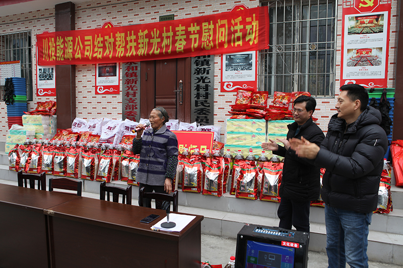 慰問現(xiàn)場,冉書記代表公司黨委和全體員工,對新光村父老鄉(xiāng)親表示誠摯的新春祝福和問候。冉書記指出,黨的十九大吹響了全面消滅貧困、實(shí)現(xiàn)小康號(hào)角,經(jīng)過幾年的努力,川投能源對口幫扶村面貌煥然一新,這得益于黨和國家的好政策,得益于扶貧干部和當(dāng)?shù)卮甯刹康墓餐?,得益于廣大鄉(xiāng)親父老的勤勞、智慧和汗水。接下來,川投能源將繼續(xù)深入貫徹中央、省委及集團(tuán)公司精準(zhǔn)脫貧精神,創(chuàng)新扶貧工作思路,提高幫扶工作標(biāo)準(zhǔn),立足實(shí)際,努力為幫扶村群眾辦更多的實(shí)事、好事,以優(yōu)異的工作業(yè)績喜迎新中國成立70周年。