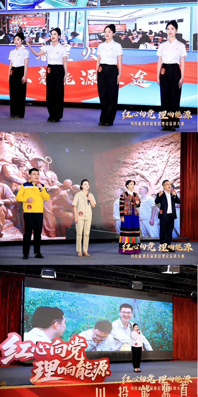決賽現(xiàn)場(chǎng),來(lái)自川投能源所屬公司的6支優(yōu)勝隊(duì)伍逐一登臺(tái)競(jìng)演,內(nèi)容聚焦項(xiàng)目建設(shè)、科技創(chuàng)新、保電保供、防洪度汛、鄉(xiāng)村振興等不同領(lǐng)域,用鮮活的事例、生動(dòng)的語(yǔ)言、真摯的情感,以“小話題”闡述“大主題”,把黨的創(chuàng)新理論轉(zhuǎn)化為干部職工通俗易懂、易于接受的家常話,贏得現(xiàn)場(chǎng)陣陣掌聲。