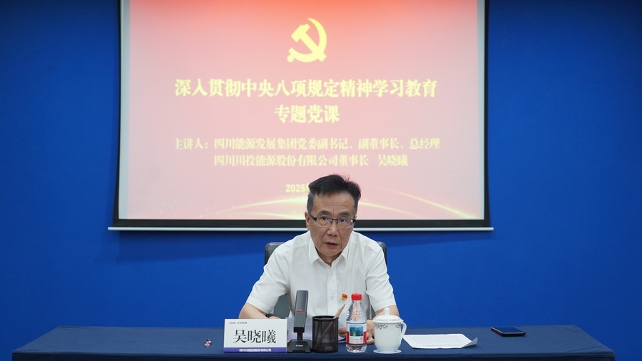 7月16日,四川能源發(fā)展集團(tuán)黨委副書記、副董事長(zhǎng)、總經(jīng)理吳曉曦赴川投能源講授深入貫徹中央八項(xiàng)規(guī)定精神學(xué)習(xí)教育專題黨課,圍繞加強(qiáng)黨的作風(fēng)建設(shè)特別是深入貫徹中央八項(xiàng)規(guī)定精神,以“深學(xué)篤行強(qiáng)作風(fēng) 踔厲奮發(fā)新征程 以過硬作風(fēng)為能源集團(tuán)改革發(fā)展保駕護(hù)航”為題,與公司黨員交流認(rèn)識(shí)體會(huì),川投能源黨委書記、副董事長(zhǎng)、總經(jīng)理?xiàng)詈橹鞒帧?