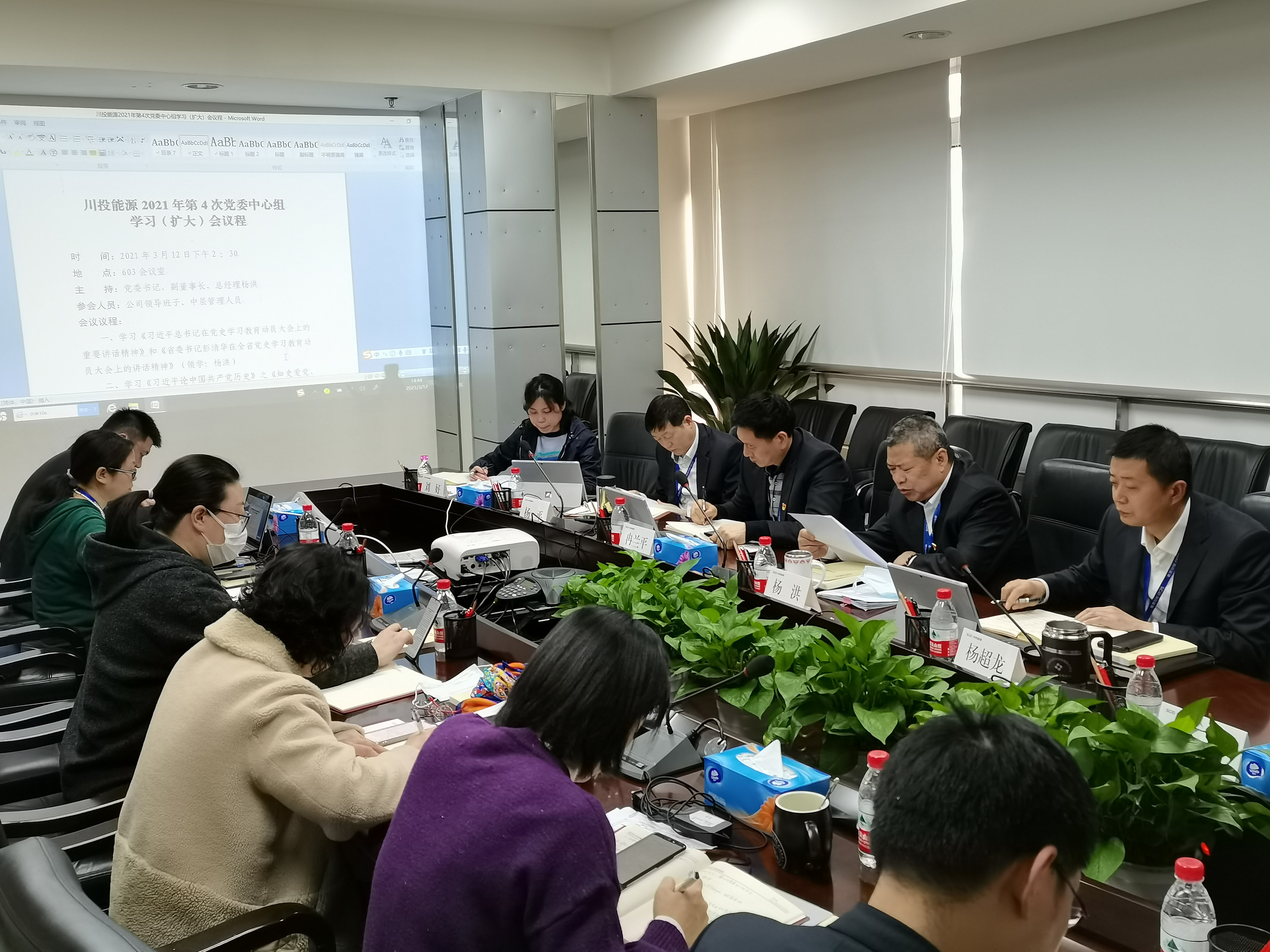 3月12日,川投能源召開(kāi)黨委理論學(xué)習(xí)中心組學(xué)習(xí)(擴(kuò)大)會(huì)議,傳達(dá)習(xí)近平總書(shū)記在黨史學(xué)習(xí)教育動(dòng)員大會(huì)上的重要講話精神和省委書(shū)記彭清華在全省黨史學(xué)習(xí)教育動(dòng)員大會(huì)上的講話精神,并集中學(xué)習(xí)《習(xí)近平論中國(guó)共產(chǎn)黨歷史》之《知史愛(ài)黨、知史愛(ài)國(guó)》篇章。公司黨委書(shū)記、副董事長(zhǎng)、總經(jīng)理?xiàng)詈橹鞒謺?huì)議并帶頭領(lǐng)學(xué)。公司領(lǐng)導(dǎo)班子成員、各部門(mén)負(fù)責(zé)人參加學(xué)習(xí)。