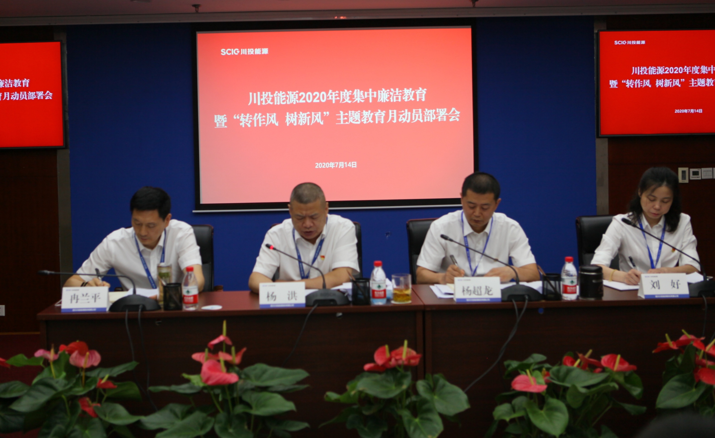 7月14日,川投能源黨委組織召開(kāi)了2020年度集中廉潔教育暨“轉(zhuǎn)作風(fēng)、樹(shù)新風(fēng)”主題教育月動(dòng)員部署會(huì)。公司黨委書(shū)記、副董事長(zhǎng)、總經(jīng)理?xiàng)詈槌鱿瘯?huì)議并講話,公司黨委副書(shū)記、工會(huì)主席楊超龍主持會(huì)議。
