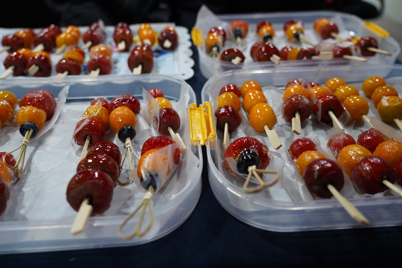 在美食集市區(qū),大家現(xiàn)場(chǎng)體驗(yàn)制作童年記憶--糖畫(huà)、冰糖葫蘆。鐵勺是筆,糖稀是墨,糖熬成的糖稀吐出甜蜜的小泡泡,輕輕一勺,各種栩栩如生的圖形,躍然而成。一支支的冰糖葫蘆,不僅串起了職工之間的甜蜜互動(dòng),也勾起了這些“大朋友”們對(duì)美好童年的回憶。