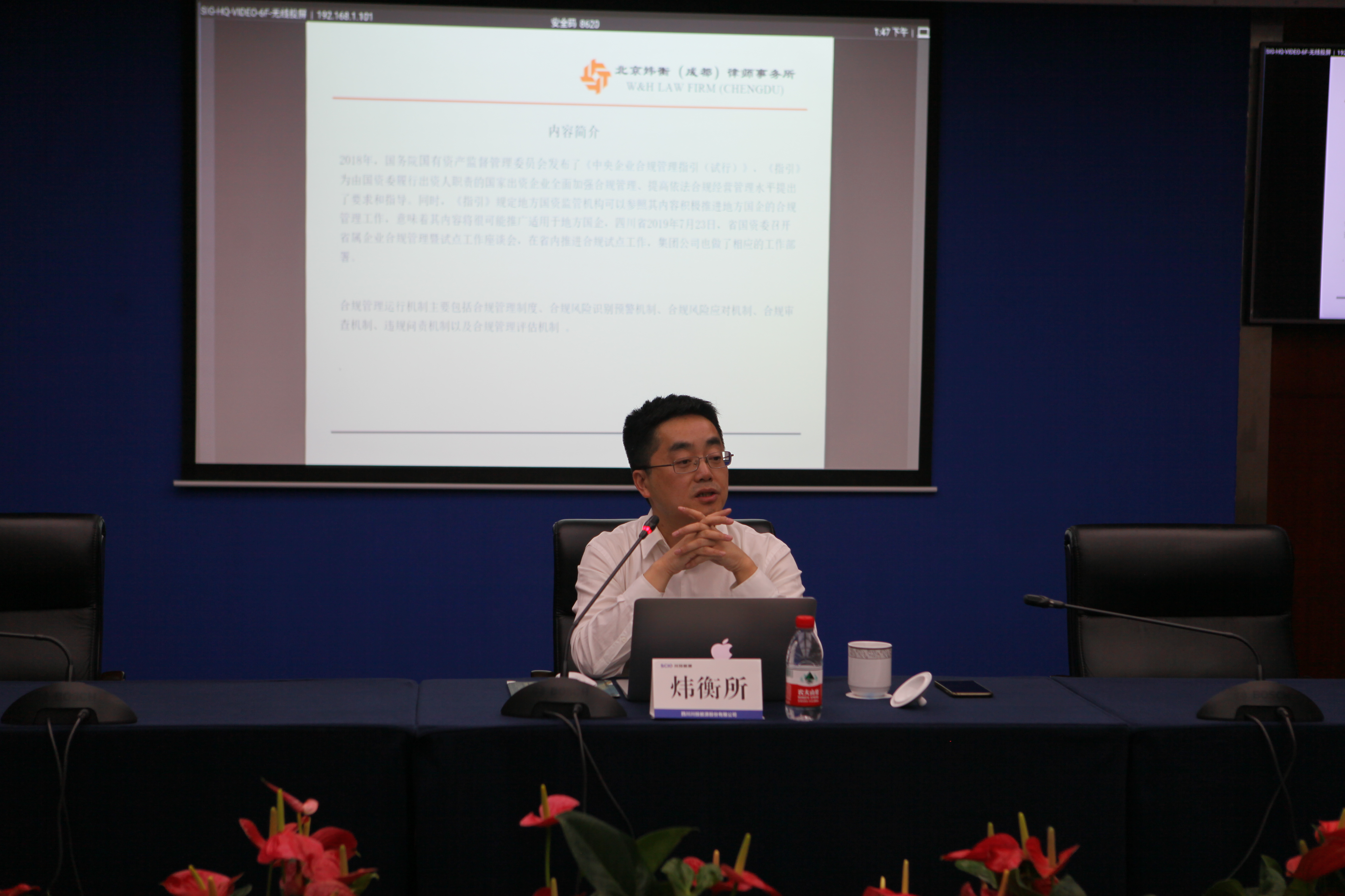 會(huì)后,北京煒衡(成都)律師事務(wù)所張強(qiáng)律師作合規(guī)管理專題培訓(xùn)。公司本部全體員工、各所屬公司主要領(lǐng)導(dǎo)、分管法治建設(shè)(合規(guī)管理、風(fēng)險(xiǎn)防控)的負(fù)責(zé)人及法務(wù)工作人員共計(jì)60余人以現(xiàn)場(chǎng)和視頻會(huì)議方式參會(huì)。
