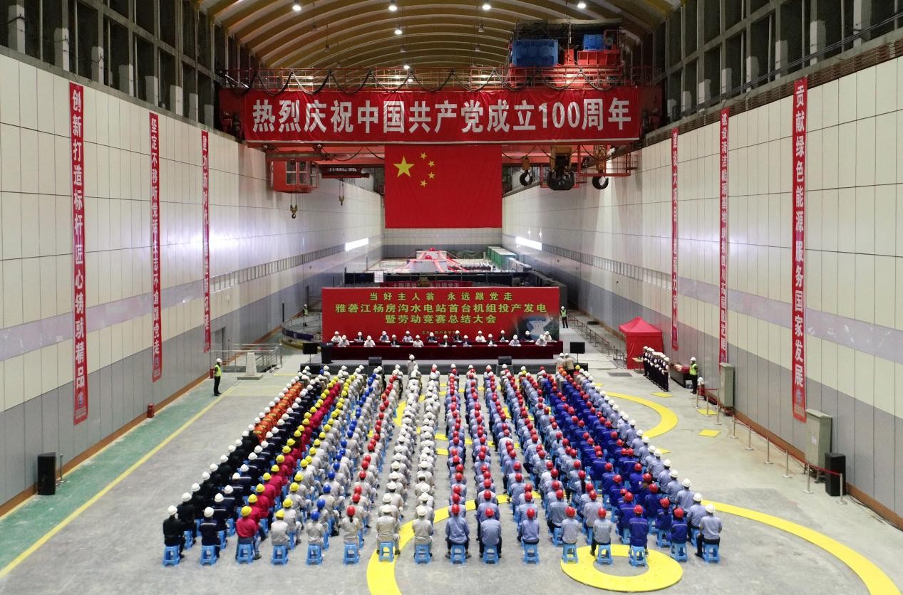 7月6日,川投能源重要參股企業(yè)雅礱江楊房溝水電站首臺(tái)機(jī)組投產(chǎn)發(fā)電暨勞動(dòng)競賽總結(jié)大會(huì)在楊房溝水電站地下廠房召開。