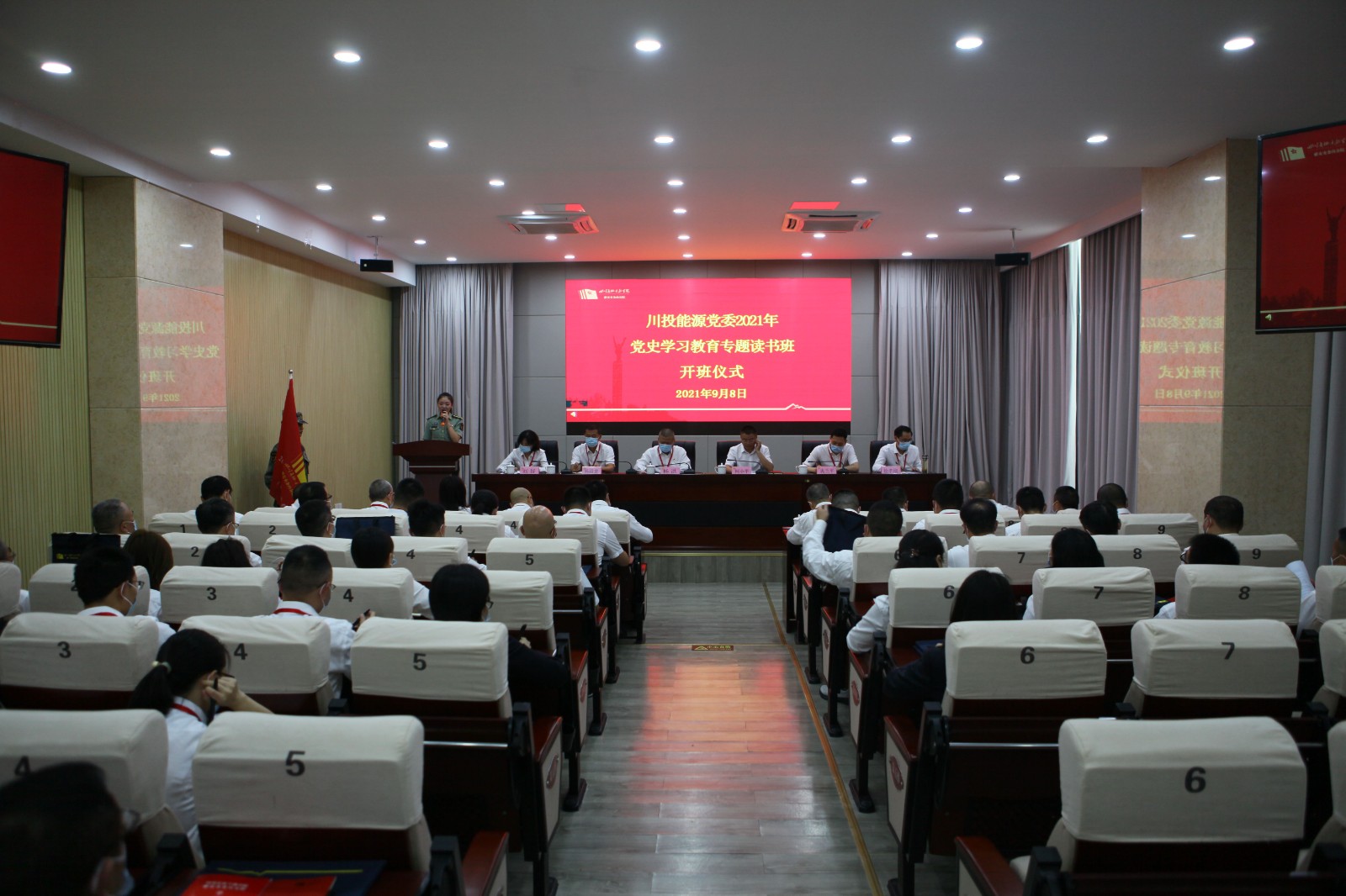 為期三天的學習中,授旗儀式、入學宣誓、學習習近平總書記七一講話、專題黨課和音像教學每一個環(huán)節(jié)都引人入勝?!都t軍長征在四川》專題黨課,不僅生動有趣還系統(tǒng)地闡述了紅軍長征為什么來到四川、在四川做了什么以及在四川停留的意義和價值。川投能源黨委副書記、工會主席楊超龍傳達了《學習貫徹習近平總書記在慶祝中國共產(chǎn)黨成立100周年大會上重要講話精神宣講提綱》,以習近平重要講話精神為基底,圍繞新思想、新觀點和新要求等方面,深入闡述了習近平總書記重要講話精神的含義和深遠意義,在場學員對“七一”重要講話精神有了更深的體會感悟,更加深刻地領(lǐng)悟了共產(chǎn)黨人的初心和使命,感悟到了偉大的長征精神,也更加體會到今天和平來之不易的。