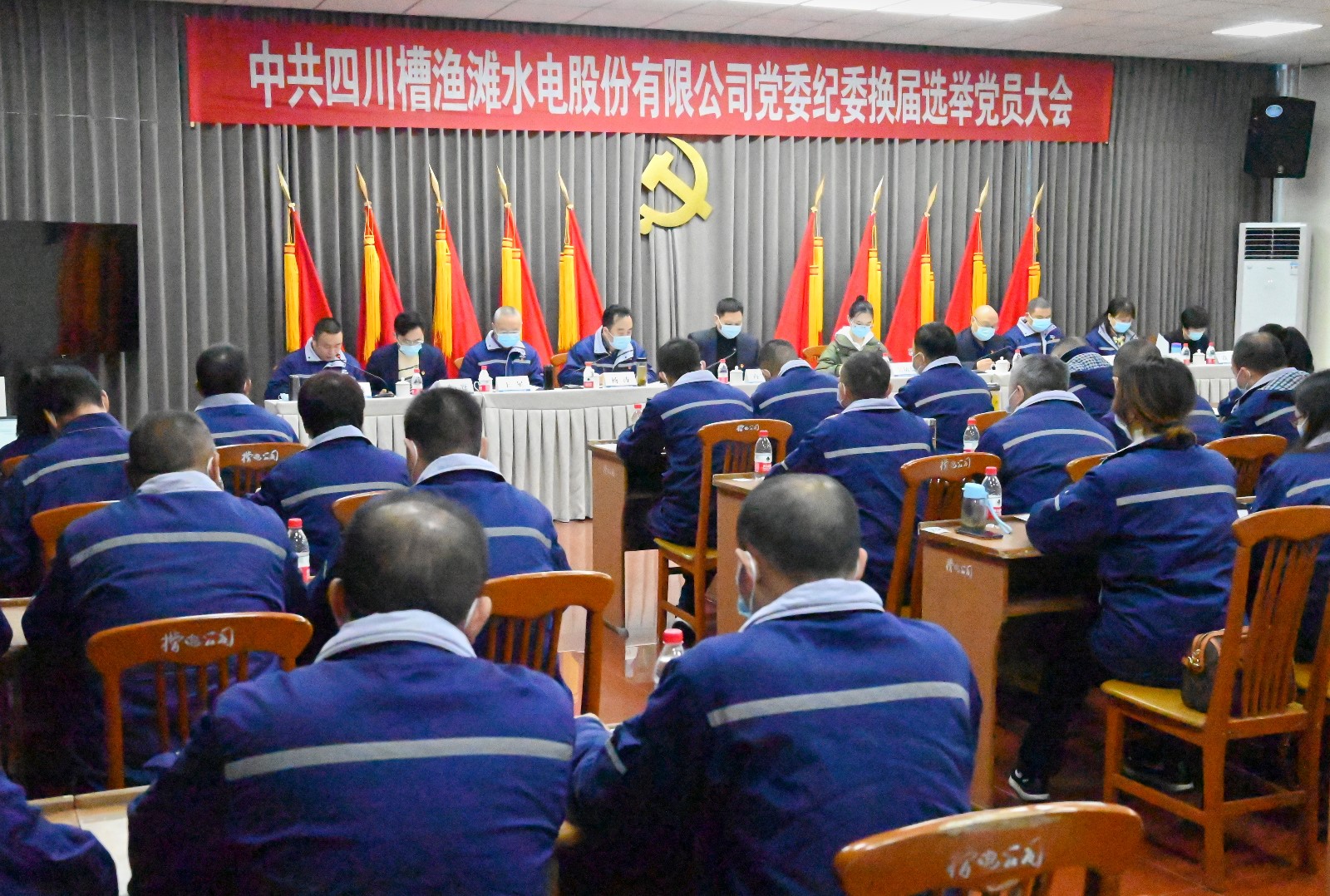 川投電力黨委書記、董事長楊濤,川投電力黨委副書記、總經(jīng)理蔡承德、槽漁灘公司全體黨員參加會議。