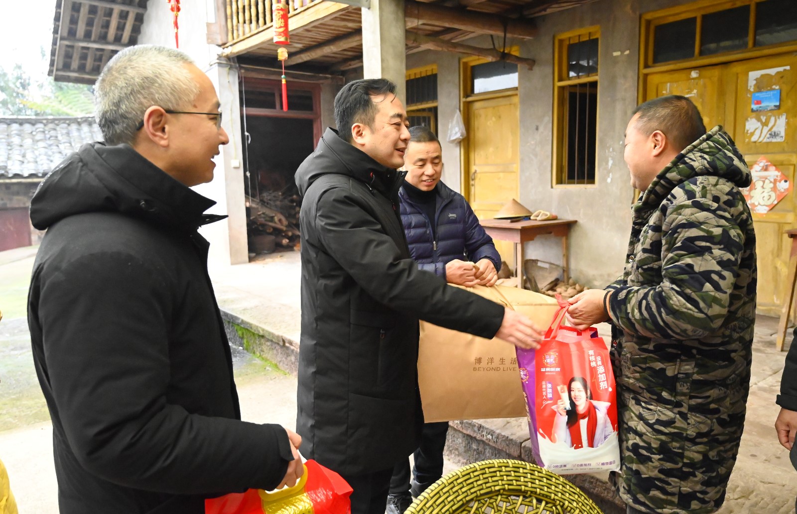 新春佳節(jié)即將來(lái)臨之際,為把槽漁灘公司的關(guān)懷和溫暖送到鄉(xiāng)村振興聯(lián)系戶的手中,讓他們度過(guò)一個(gè)歡樂(lè)喜慶的節(jié)日。1月12日,公司黨委書(shū)記、董事長(zhǎng)楊濤帶領(lǐng)公司鄉(xiāng)村振興幫扶干部一起到槽漁灘鎮(zhèn)文山村看望聯(lián)系戶,為他們送上了節(jié)日的禮物與祝福。