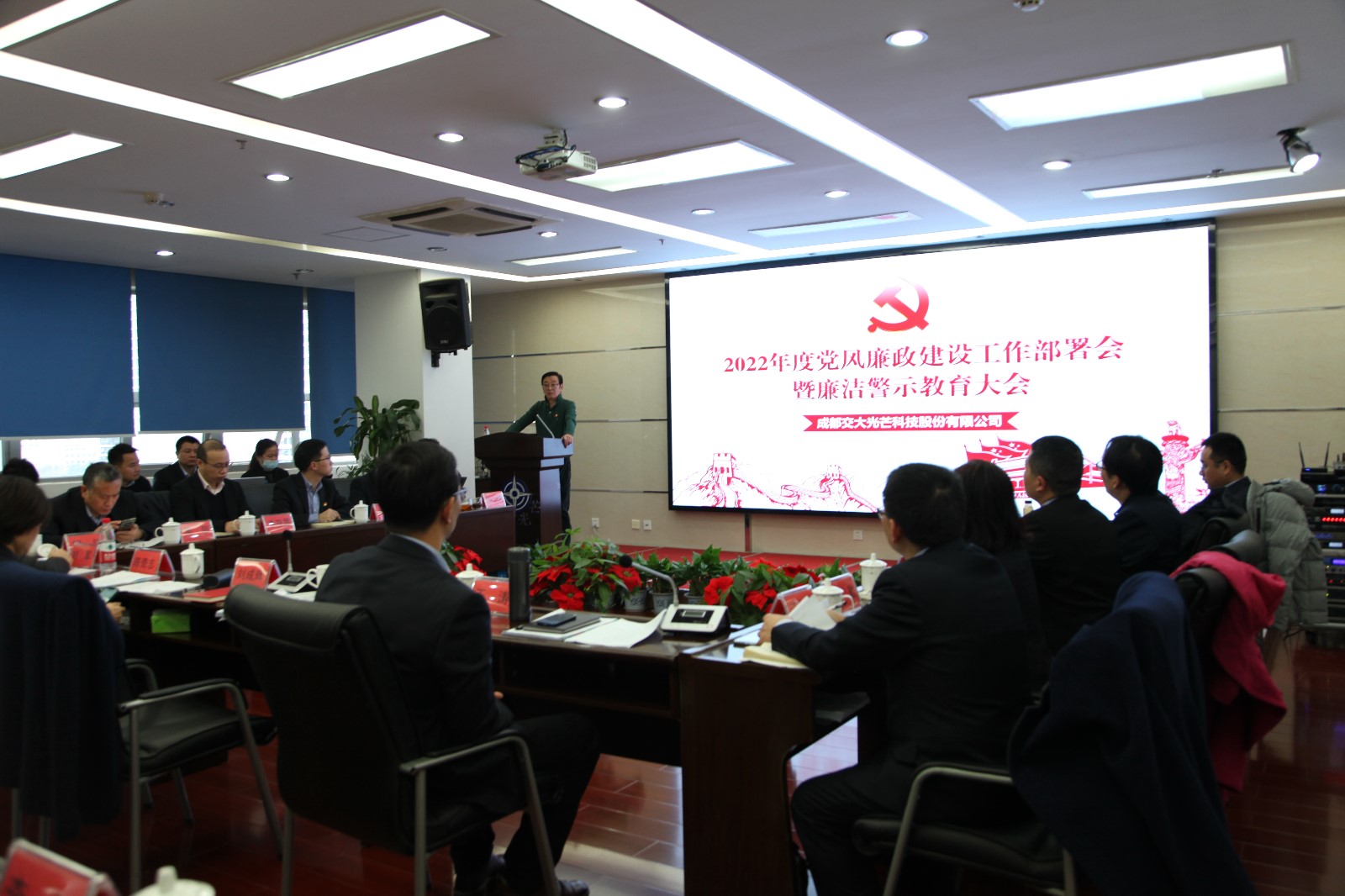 為進(jìn)一步貫徹落實(shí)習(xí)近平總書記關(guān)于全面從嚴(yán)治黨重要論述,推動黨要管黨、全面從嚴(yán)治黨的政治責(zé)任層層壓緊壓實(shí),1月25日,交大光芒召開2022年度黨風(fēng)廉政建設(shè)工作部署會暨廉潔警示教育大會。交大光芒黨總支書記、總經(jīng)理劉成輝主持會議并作警示談話。