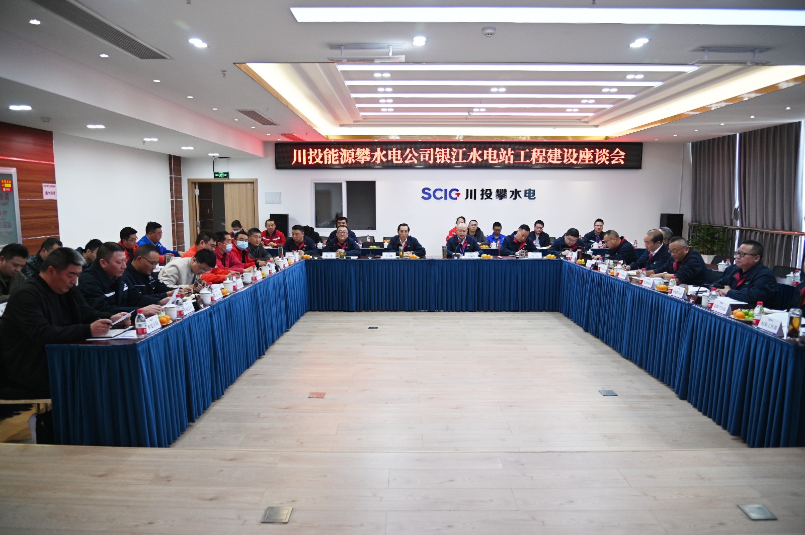 為全面總結(jié)2021年度工程建設(shè)情況,安排部署2022年度重點(diǎn)工作,加強(qiáng)與各參建單位在工程建設(shè)、服務(wù)合作等方面溝通交流,近日,公司組織召開(kāi)了銀江水電站工程建設(shè)座談會(huì),川投能源副總經(jīng)理、公司黨總支書記、董事長(zhǎng)徐孝剛,公司領(lǐng)導(dǎo)、各部門負(fù)責(zé)人及全體員工,各參建單位項(xiàng)目主要負(fù)責(zé)人等共計(jì)60余人參加會(huì)議,會(huì)議由公司黨總支委員、總經(jīng)理吳巍嶼主持。