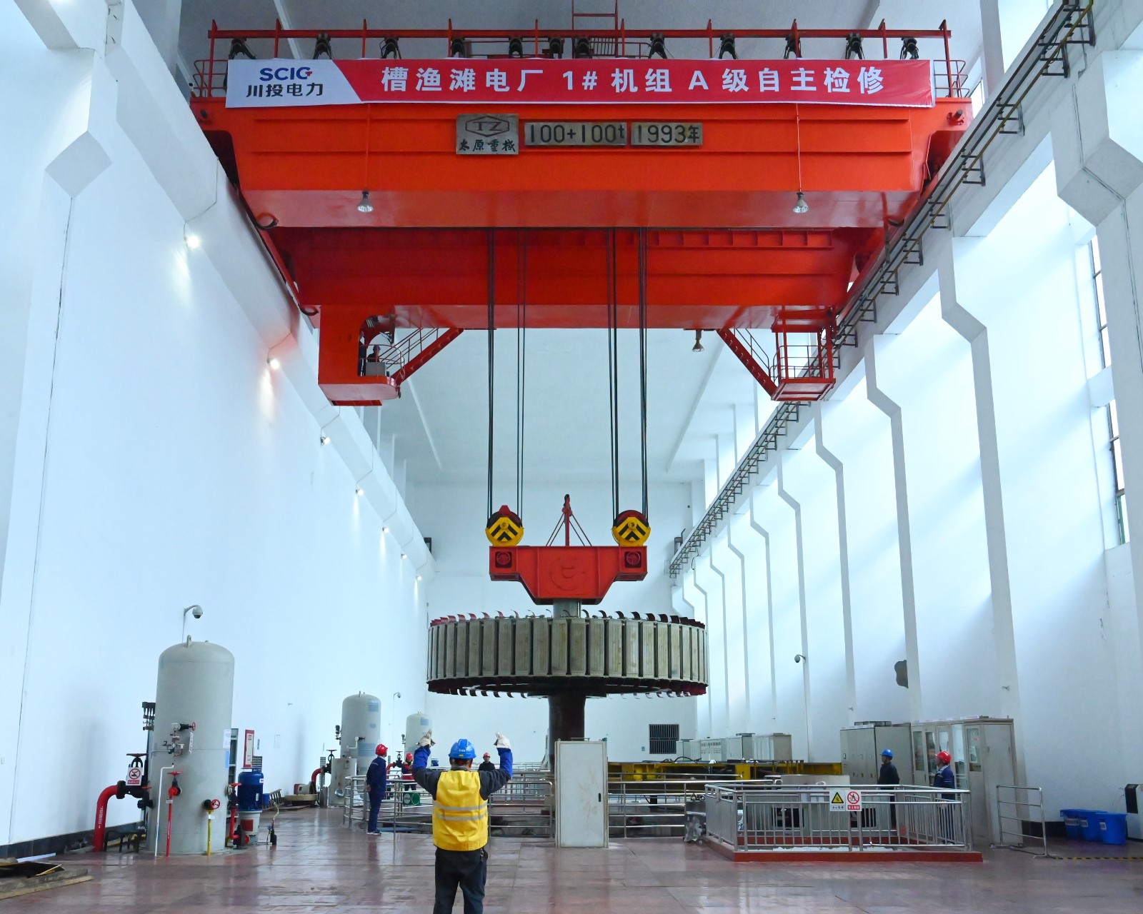 槽漁灘電廠按計劃開展了1#機(jī)組大修,2021年12月1日開工,2002年2月15日機(jī)組成功并網(wǎng)發(fā)電,檢修工期僅僅用了65天。參檢人員提前編制發(fā)電機(jī)轉(zhuǎn)子、轉(zhuǎn)輪吊裝方案,明確人員職責(zé),檢查并調(diào)校行車、吊具,規(guī)劃行徑路線,在檢修團(tuán)隊(duì)通力協(xié)作下,均一次性安全順利吊出。2#、3#機(jī)組C修以及1#主變小修、2#主變大修也于4月5日全部完工;目前正持續(xù)推進(jìn)線路保護(hù)改造工作。