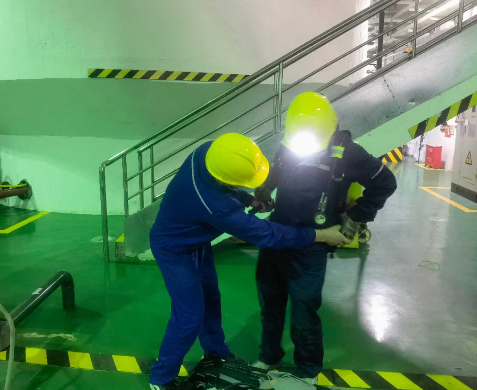 此次演練分為檢驗有限空間作業(yè)事故現(xiàn)場應(yīng)急處置程序和應(yīng)急救援設(shè)備設(shè)施使用兩個科目。
