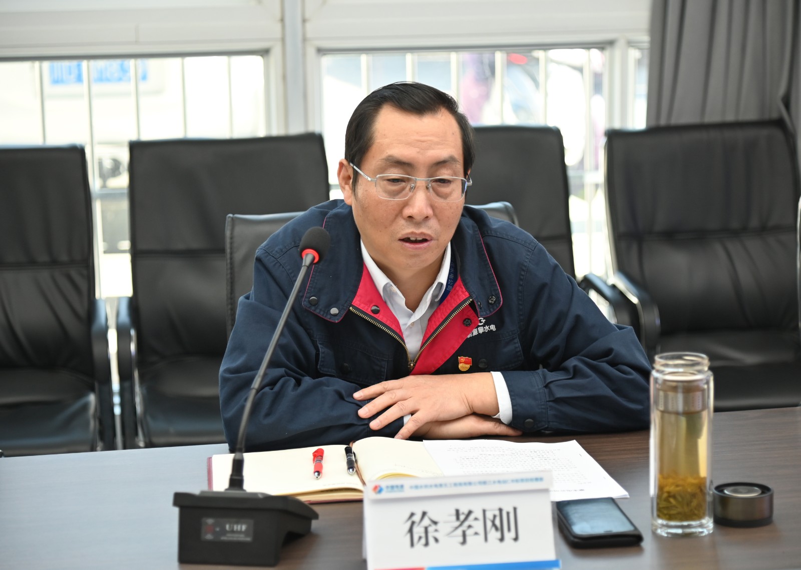在宣講前,徐孝剛深入銀江水電站廠房和大壩基坑施工現(xiàn)場進(jìn)行了檢查調(diào)研,詳細(xì)了解目前的施工進(jìn)度及下步施工安排,并立即組織公司相關(guān)部門和設(shè)計、監(jiān)理等單位現(xiàn)場研究,及時解決存在的困難,確保銀江水電站順利施工?,F(xiàn)場調(diào)研完后,徐孝剛立即前往水電五局銀江項(xiàng)目黨支部進(jìn)行了黨的二十精神大專題宣講,主要從5個深刻領(lǐng)會以及堅定推動黨的二十大決策部署在攀水電公司、攀新能源公司落地見效等6個方面進(jìn)行了深入淺出的講解。