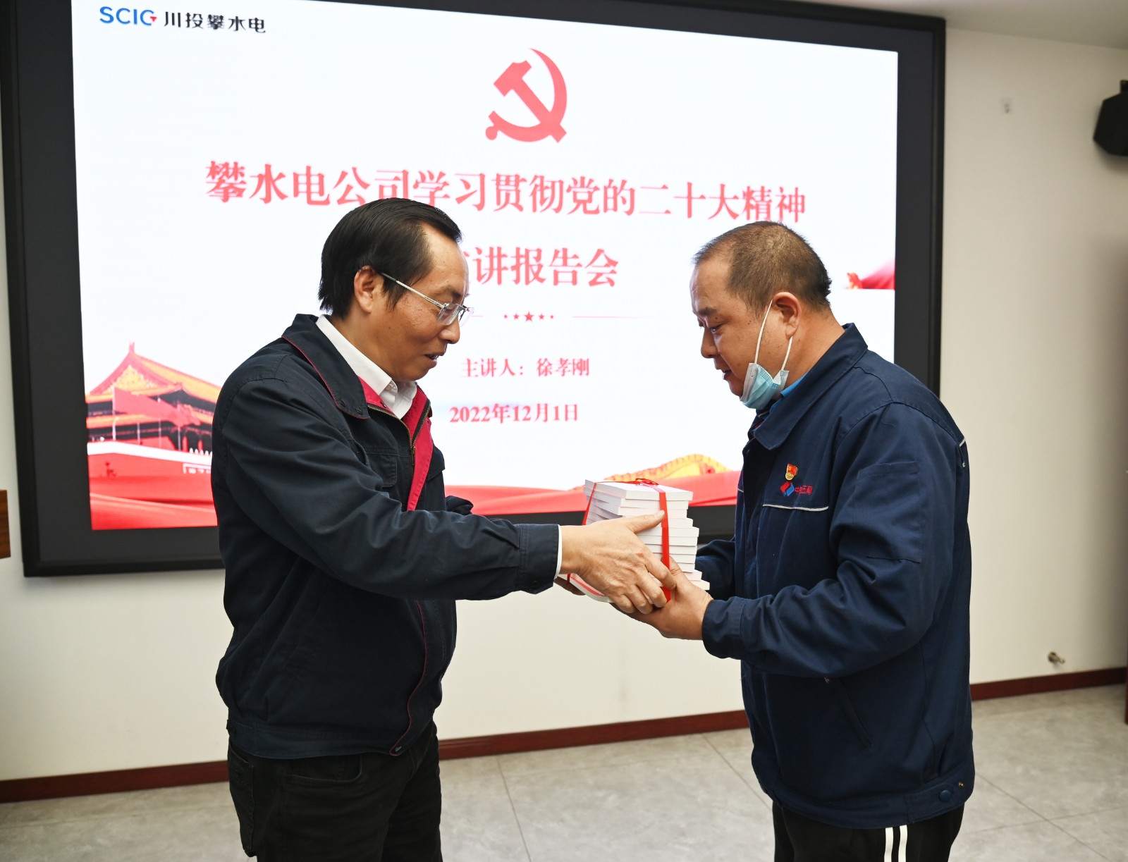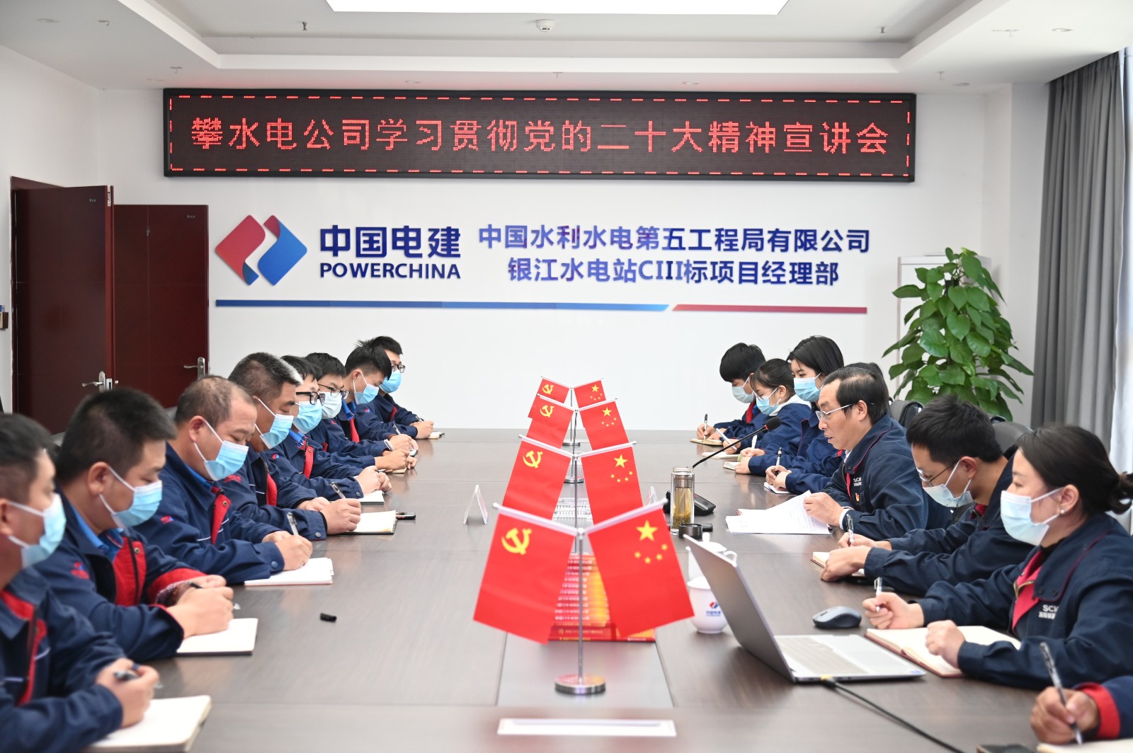 根據(jù)川投集團(tuán)黨委、川投能源黨委有關(guān)要求和攀水電公司黨總支工作安排,為進(jìn)一步學(xué)習(xí)宣傳貫徹黨的二十大精神,激勵銀江水電站參建單位全面學(xué)習(xí)、全面把握、全面落實(shí)黨的二十大精神,12月1日上午,川投能源副總經(jīng)理、攀水電公司黨總支書記、董事長、攀新能源公司董事長徐孝剛到聯(lián)建支部水電五局銀江項(xiàng)目黨支部進(jìn)行黨的二十精神專題宣講。水電五局銀江項(xiàng)目黨支部全體黨員、入黨積極分子、職工代表共計20余人參加此次宣講會。