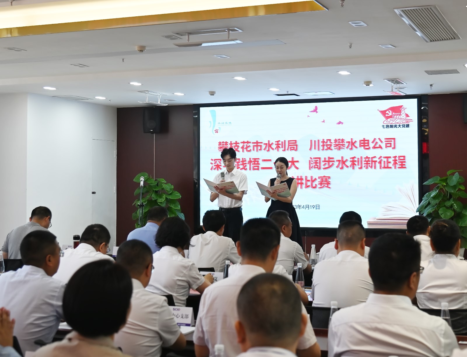 為全面貫徹黨的二十大精神,扎實開展學習貫徹習近平新時代中國特色社會主義思想主題教育,在攀水電黨總支開展主題教育領(lǐng)導干部讀書班期間,為豐富學習形式,營造濃厚學習氛圍,近日,攀水電公司與攀枝花市水利局共同舉辦了“深學踐悟二十大、闊步水利新征程”深化“水潤花城”黨建品牌建設(shè)暨政企黨組織共建活動,開展征文和演講比賽。攀枝花市直機關(guān)工委常務(wù)副書記鮮明,攀枝花市水利局黨組成員、副局長林兆東,黨組成員、機關(guān)黨委書記胡嘉,川投能源副總經(jīng)理、攀水電公司黨總支書記、董事長、攀新能源董事長徐孝剛及讀書班成員參加此次活動并擔任評委。