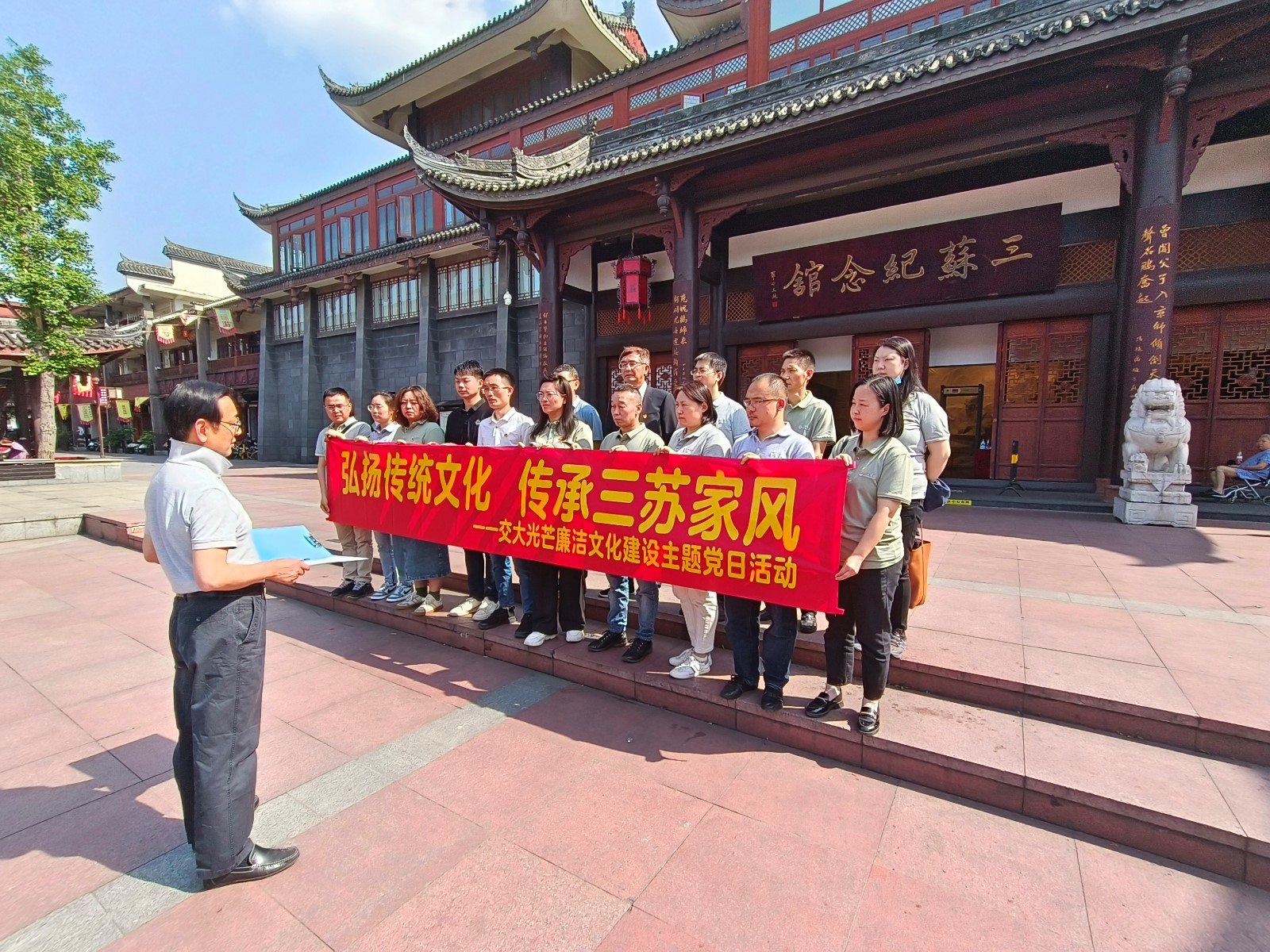 為深入學(xué)習(xí)貫徹習(xí)近平總書記關(guān)于注重家庭家教家風(fēng)建設(shè)的重要論述和黨的二十大精神,大力弘揚(yáng)和傳承優(yōu)秀傳統(tǒng)文化,4月27日,交大光芒黨總支組織經(jīng)營班子成員、中層管理人員、關(guān)鍵崗位人員赴三蘇祠開展廉潔文化建設(shè)主題黨日活動(dòng)。
