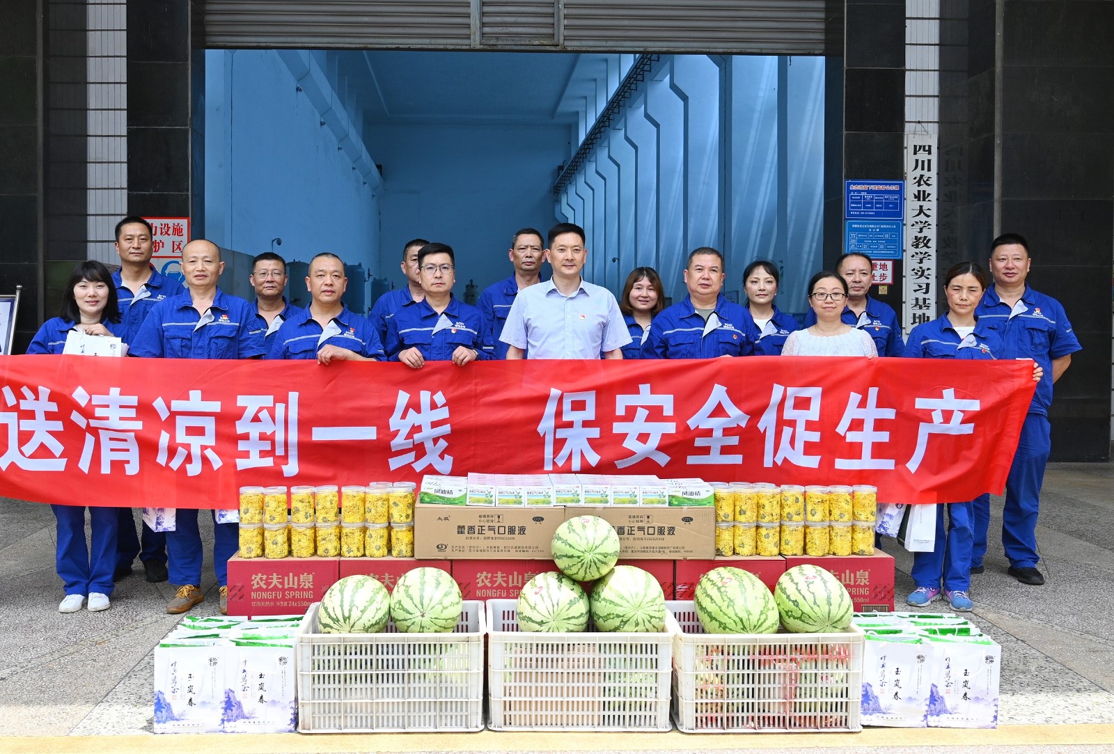 冉蘭平一行帶著對(duì)一線職工的牽掛與關(guān)懷,冒著酷暑來(lái)到槽漁灘公司電廠,為奮戰(zhàn)在工作崗位上的一線職工送上夏日里的一份心意。冉蘭平向電廠職工送上了菊花茶、藿香正氣液、清涼油、西瓜等防暑降溫用品,并叮囑他們?cè)趰徫簧献龊梅朗罱禍?、安全生產(chǎn)工作。