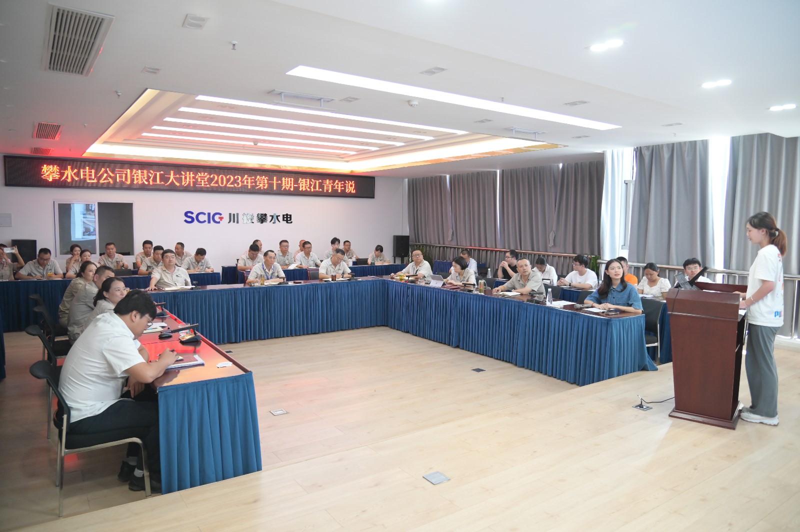 為進(jìn)一步做好攀水電公司團(tuán)青工作,打造朝氣蓬勃的銀江青年隊(duì)伍,2023年8月16日下午,公司組織開(kāi)展2023年第10期銀江大講堂,本次大講堂形式新穎、不同往常,而是由銀江青年擔(dān)當(dāng)主角,大膽分享他們眼中的“銀江風(fēng)景”。攀水電公司領(lǐng)導(dǎo)、各部門(mén)負(fù)責(zé)人、全體員工公司共計(jì)40余人參加。