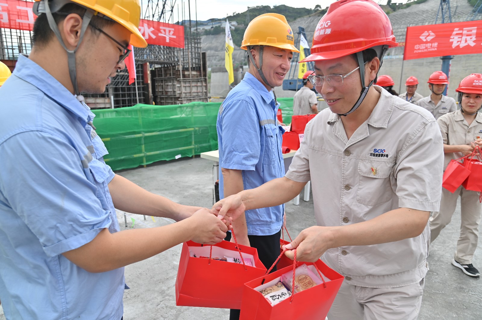 儀式最后,徐孝剛一行代表攀水電公司向中秋佳節(jié)仍堅(jiān)守在施工一線的全體人員送上了中秋、國(guó)慶節(jié)日慰問(wèn)。
