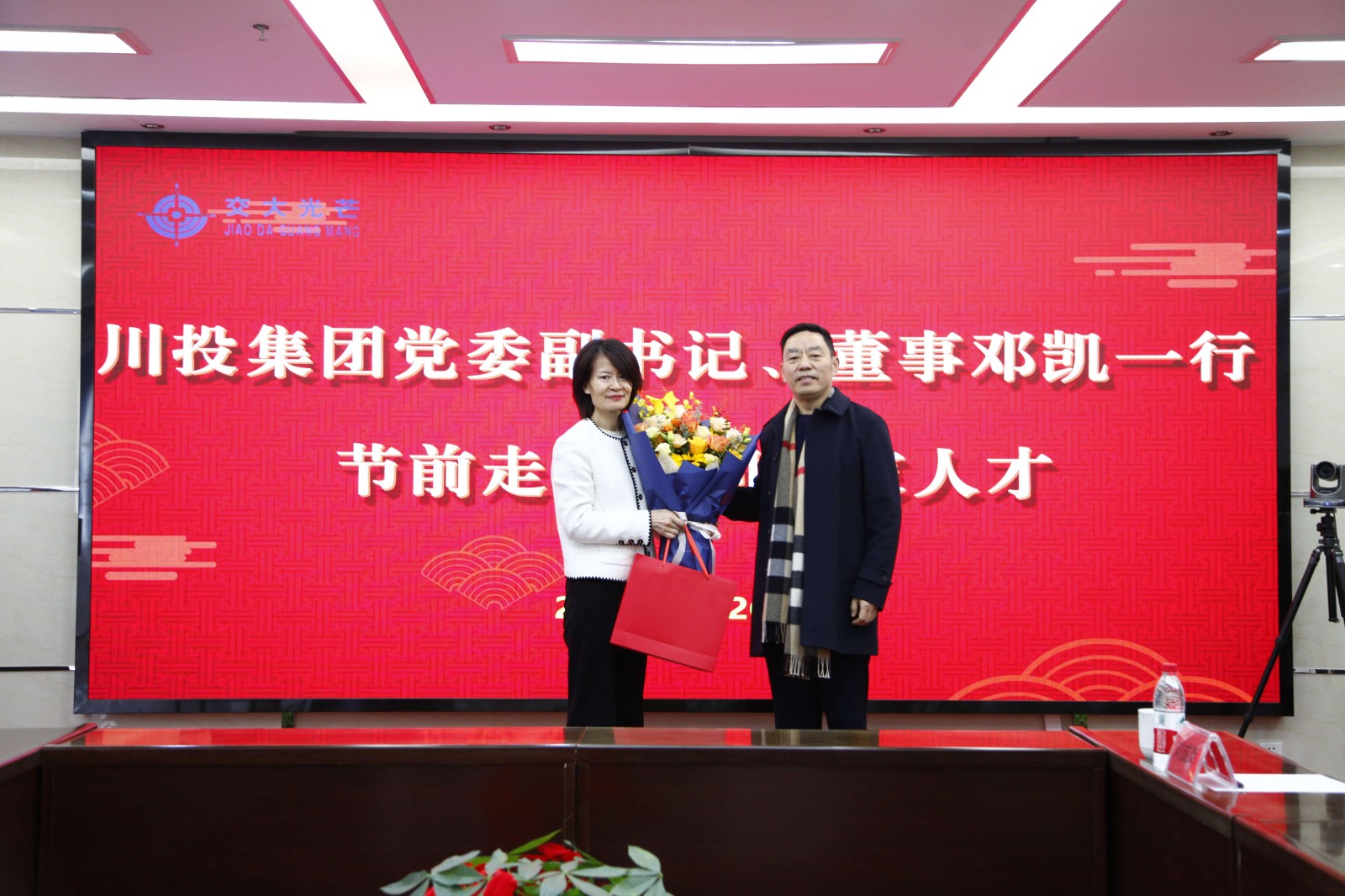 1月26日,川投集團黨委副書記、董事鄧凱帶隊赴交大光芒走訪慰問專家人才。川投集團機關(guān)黨委書記、黨委組織部部長朱莉,黨委宣傳部(群團工作部)部長何金輝參加走訪慰問。川投能源黨委委員、財務(wù)總監(jiān)兼交大光芒董事長劉好一同參加走訪慰問。