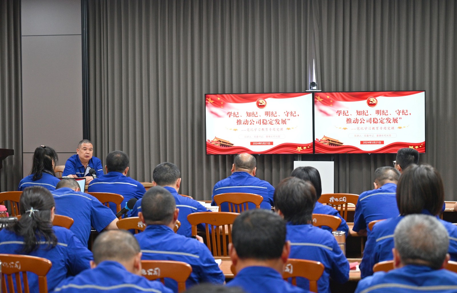 公司黨委書記、董事長(zhǎng)何光富以《學(xué)紀(jì)、知紀(jì)、明紀(jì)、守紀(jì),推動(dòng)公司持續(xù)穩(wěn)定高質(zhì)量發(fā)展》為題,從開(kāi)展黨紀(jì)學(xué)習(xí)教育重在“學(xué)紀(jì)”,根在“知紀(jì)”,貴在“明紀(jì)”,成在“守紀(jì)”四個(gè)方面,為全體支部黨員講授了一堂黨紀(jì)學(xué)習(xí)教育專題黨課。何光富在授課中將黨紀(jì)學(xué)習(xí)教育落實(shí)到公司具體工作中,介紹了2024年退休職工社會(huì)化管理移交工作進(jìn)展情況。他要求,公司全體黨員干部要進(jìn)一步提高政治站位,把思想和行動(dòng)統(tǒng)一到公司黨委的決策部署上來(lái),把社會(huì)化管理移交工作作為公司黨紀(jì)學(xué)習(xí)教育的一個(gè)重要實(shí)踐,用于檢驗(yàn)黨紀(jì)學(xué)習(xí)教育的成效。他希望全體黨員干部要積極作為、勇于擔(dān)當(dāng),心往一處想、勁往一處使,維護(hù)公司和諧穩(wěn)定發(fā)展良好局面,為推動(dòng)公司高質(zhì)量發(fā)展努力奮斗。