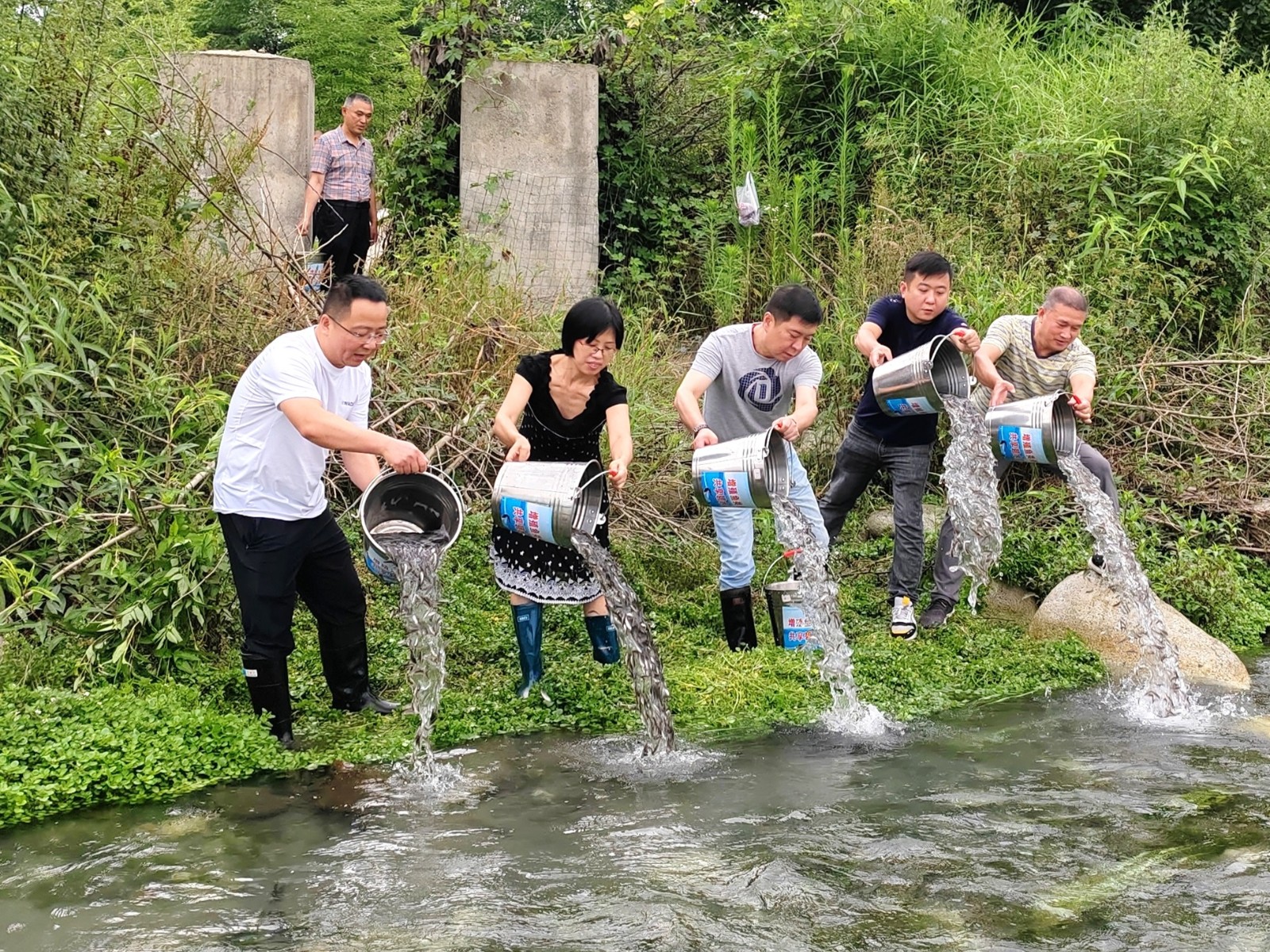 上午10時(shí),位于通濟(jì)驛站附近的湔江河段魚類增殖放流投放點(diǎn)橫幅飄揚(yáng)、人潮涌動(dòng),在彭州市農(nóng)業(yè)農(nóng)村局、通濟(jì)鎮(zhèn)政府等主管部門人員的現(xiàn)場指導(dǎo)和周邊村鎮(zhèn)群眾代表的共同見證下,公司人員現(xiàn)場放流了珍貴的齊口裂腹魚苗共計(jì)20000尾,將新的生機(jī)和活力注入碧波蕩漾的河流。