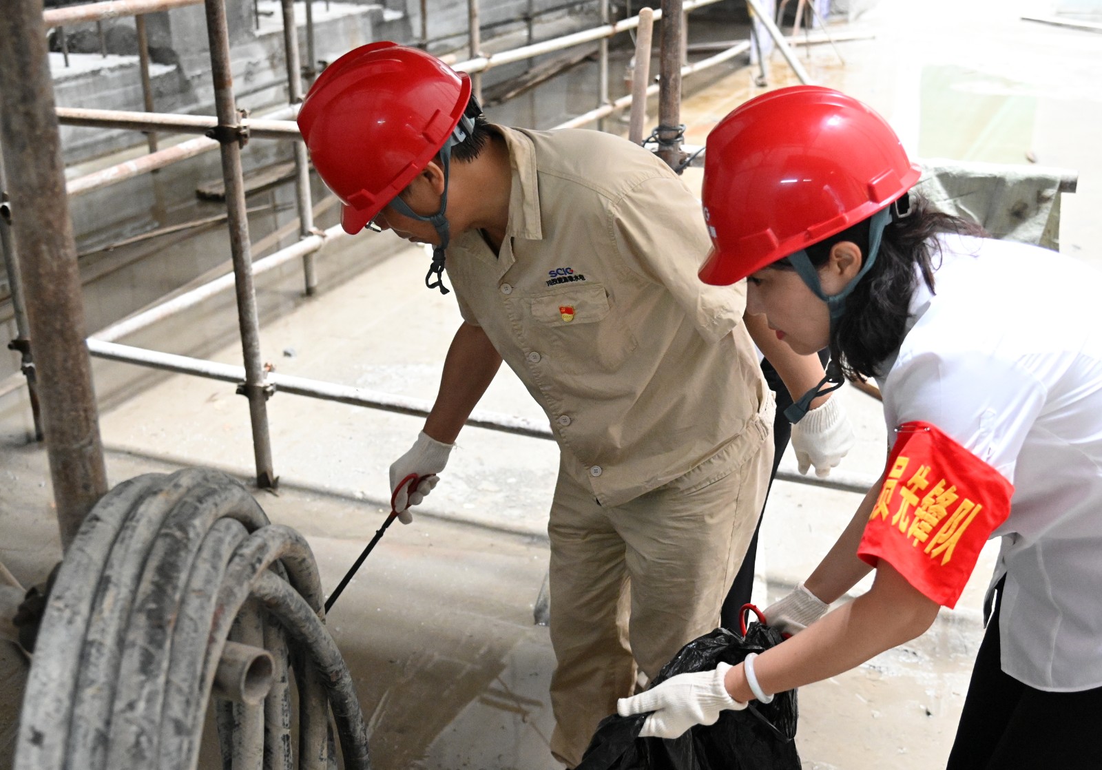 大家來到銀江水電站壩頂施工通道,對現(xiàn)場吊裝點及各施工作業(yè)面衛(wèi)生清潔區(qū)域進行了清掃分工,各支部黨員同志沖鋒在前,主動帶領其他黨員同志、志愿者對銀江水電站壩頂、壩頂至安裝間通道、安裝間、副廠房等區(qū)域進行了衛(wèi)生清掃、垃圾清運,并協(xié)調(diào)了臨時堆放物資、安裝構建的整理吊裝等,為后期轉子支架到達現(xiàn)場營造了整潔、便捷的環(huán)境。