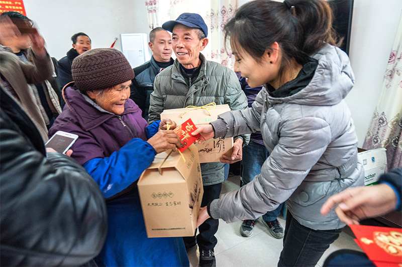 茶話會(huì)后,朱莉送上了田灣河公司支援村委會(huì)的辦公設(shè)備,并對(duì)在場(chǎng)貧困戶發(fā)放代表喜慶、祝福的新年紅包和慰問品。隨后在村黨支部曾書記帶領(lǐng)下,田灣河公司一行人實(shí)地上門走訪部分行動(dòng)不便未能參加活動(dòng)的貧困戶,關(guān)心他們的生活起居、衣食住行,并幫助他們打掃衛(wèi)生、貼春聯(lián)、送祝福。一片忙碌的景象,讓貧困戶提前感受到節(jié)日的喜慶。