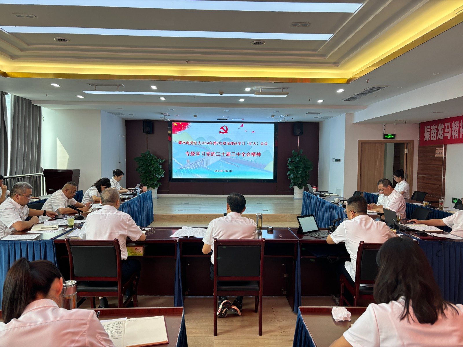 7月24日,攀水電公司黨總支召開2024年第9次政治理論學習(擴大)會議,專題傳達學習黨的二十屆三中全會精神,會議由川投能源副總經(jīng)理、攀水電公司黨總支書記、董事長徐孝剛主持,公司黨總支政治理論學習會成員、全體中干、支部書記、其他黨員、統(tǒng)戰(zhàn)對象、入黨積極分子共計30余人參加學習。