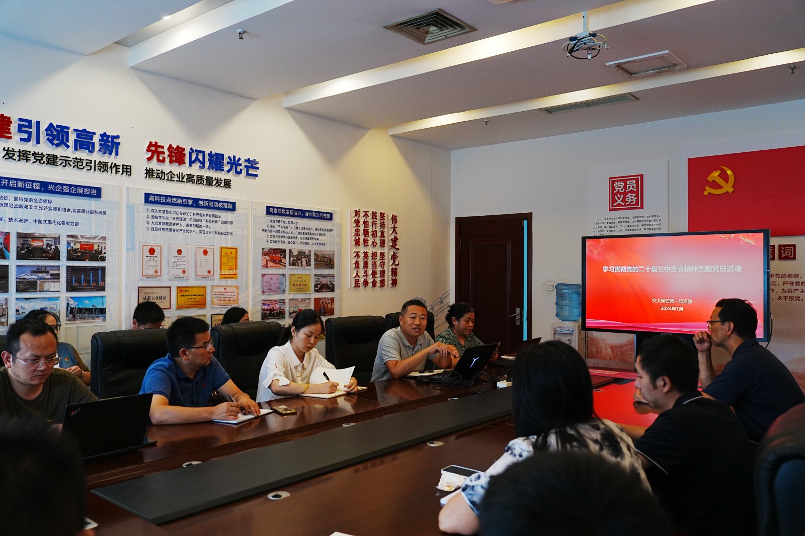7月29日,交大光芒第一黨支部開展學(xué)習(xí)貫徹黨的二十屆三中全會及省委十二屆五中全會精神主題黨日活動。活動由支部書記王輝主持,支部全體黨員、入黨積極分子參加。黨總支書記、常務(wù)副總經(jīng)理王濤以及黨總支副書記、總經(jīng)理助理汪志橋以普通黨員身份參加。
