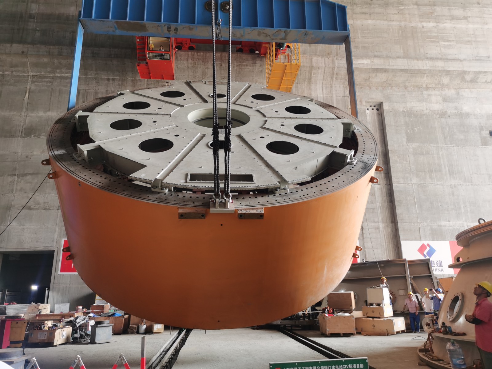 穩(wěn)中求快,加速建設(shè)。在銀江水電站的建設(shè)現(xiàn)場(chǎng),機(jī)器轟鳴,焊花四濺,一片繁忙景象。攀水電公司在確保“穩(wěn)”的堅(jiān)實(shí)基礎(chǔ)上,積極踐行“快”的要求,以只爭(zhēng)朝夕的緊迫感,全力加快項(xiàng)目建設(shè)進(jìn)度。隨著機(jī)電安裝作業(yè)面的全面鋪開(kāi),工期緊、任務(wù)重的挑戰(zhàn)擺在眼前,攀水電公司果斷采取一系列有力措施,加大人員和設(shè)備投入,增加施工班組,延長(zhǎng)作業(yè)時(shí)間,提高工作效率。2024年8月29日下午,在銀江水電站的機(jī)電安裝現(xiàn)場(chǎng),氣氛熱烈而緊張,隨著定子的精準(zhǔn)吊裝到位,標(biāo)志著首臺(tái)機(jī)組安裝取得了重大進(jìn)展。目前銀江水電站首臺(tái)機(jī)組導(dǎo)水機(jī)構(gòu)、主軸、組合軸承、轉(zhuǎn)輪、定子、轉(zhuǎn)子均已安裝就位,為后續(xù)機(jī)組的調(diào)試和投產(chǎn)奠定了堅(jiān)實(shí)的基礎(chǔ)。