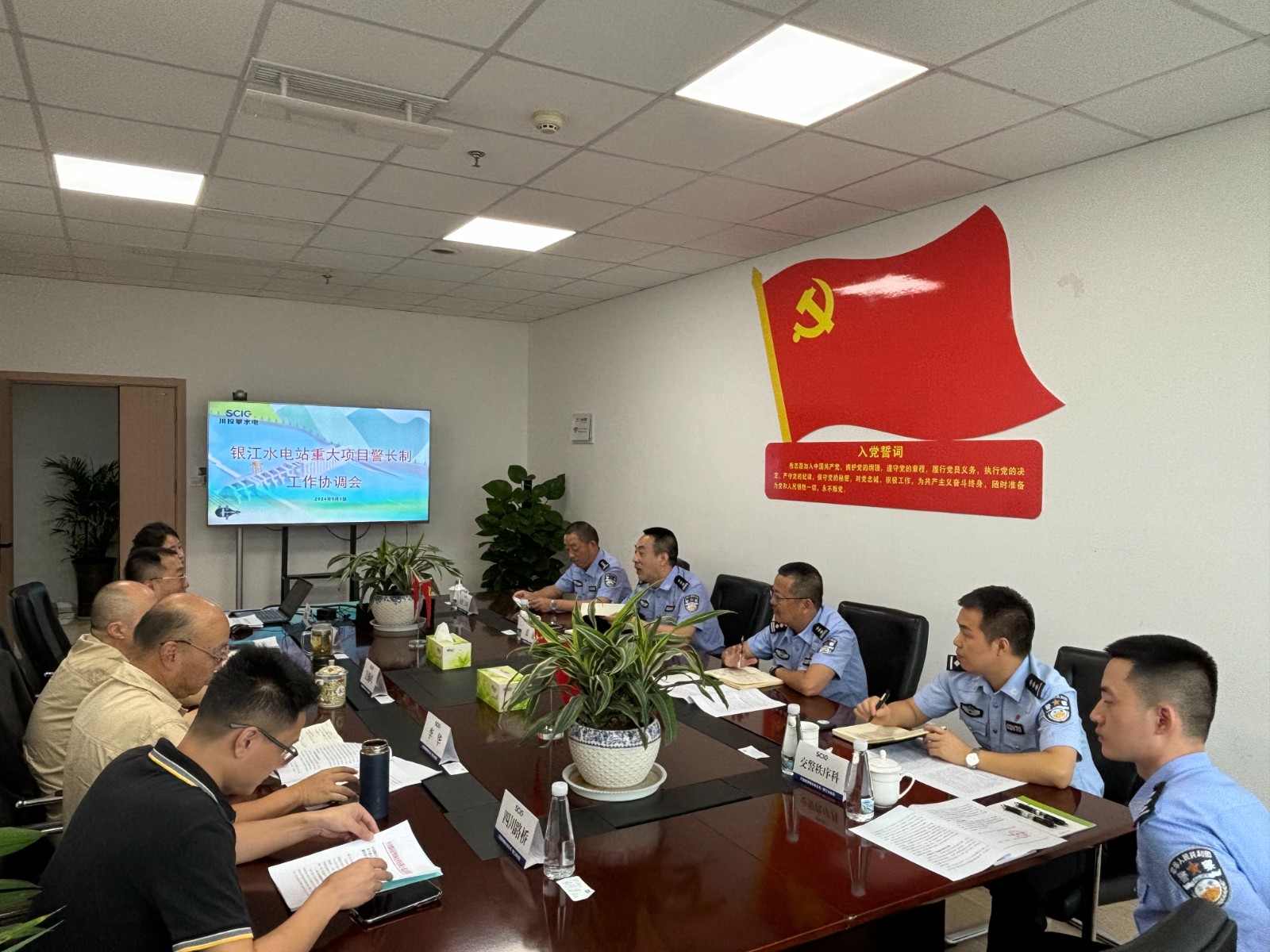 為保障銀江水電站重大項目安全順利推進,護航服務攀枝花市高質(zhì)量發(fā)展建設共同富裕試驗區(qū),攀枝花市公安局與攀水電公司建立了銀江水電站“重大項目警長制”,9月3日上午,市公安局機關(guān)黨委副書記張征帶隊赴公司召開工作協(xié)調(diào)會議。攀水電公司黨總支副書記、總經(jīng)理、聯(lián)絡工作組組長吳巍嶼出席會議,交警支隊辦公室、秩序科、三大隊及公司相關(guān)部門等10余人參加會議。
