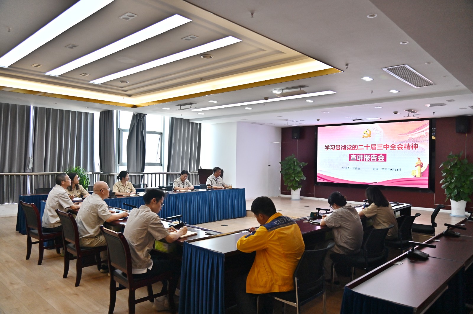 為深入學(xué)習(xí)貫徹黨的二十屆三中全會(huì)精神,引導(dǎo)廣大黨員把思想和行動(dòng)統(tǒng)一到全會(huì)精神上來,根據(jù)川投能源黨委的部署及攀水電公司黨總支的安排,9月13日下午,攀水電公司黨總支委員、財(cái)務(wù)總監(jiān)王俊森在聯(lián)系指導(dǎo)黨支部及分管部門開展黨的二十屆三中全會(huì)精神專題宣講。公司資金財(cái)務(wù)部、設(shè)計(jì)監(jiān)理聯(lián)合黨支部全體黨員共計(jì)10余人參加此次宣講。