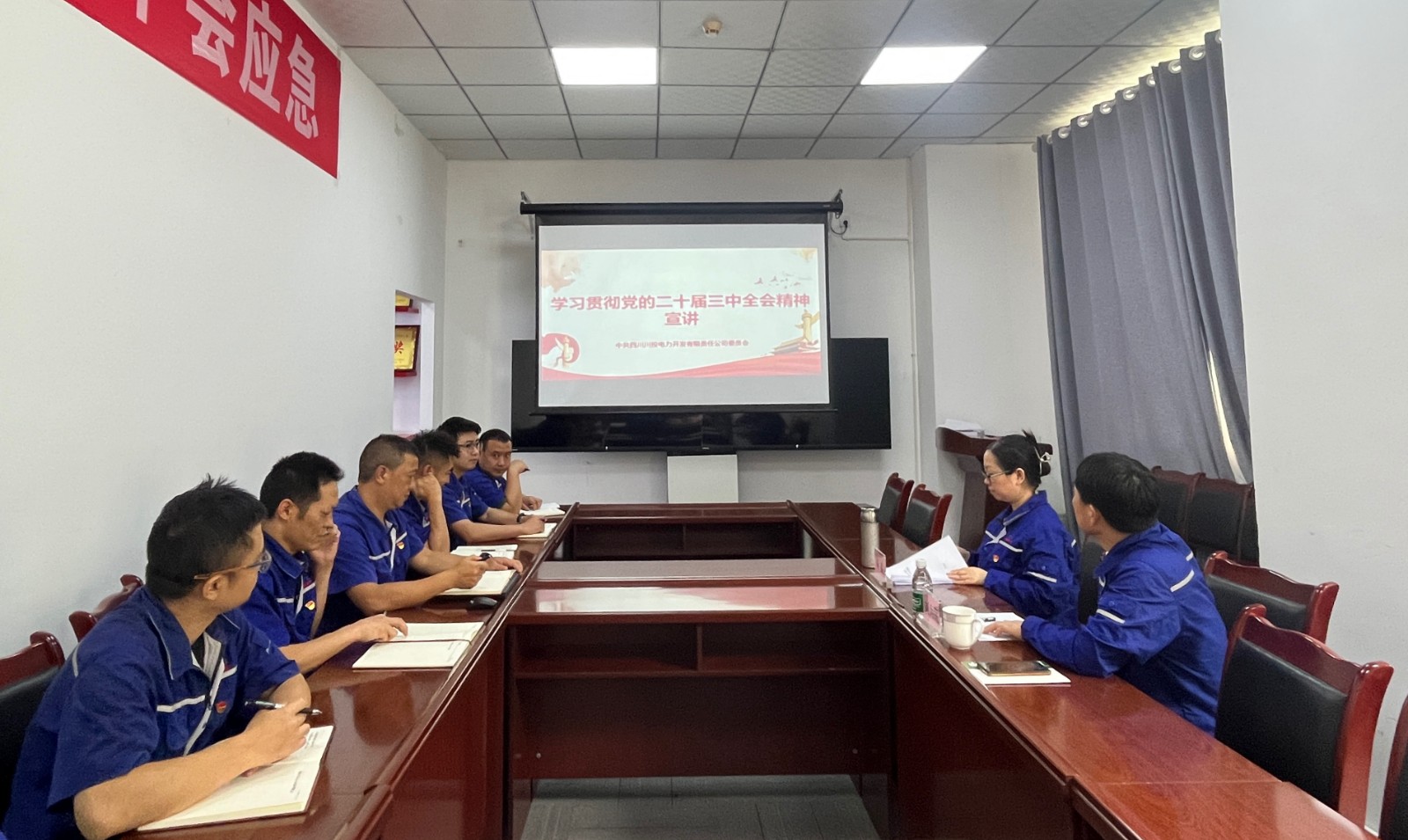 楊鑫一行對(duì)電廠支部學(xué)習(xí)貫徹全會(huì)精神、電廠重點(diǎn)任務(wù)完成以及抓實(shí)安全生產(chǎn)等工作進(jìn)行督導(dǎo),提出了指導(dǎo)意見(jiàn)和工作要求:一是要將學(xué)習(xí)貫徹全會(huì)精神,作為支部當(dāng)前和今后一個(gè)時(shí)期的重大政治任務(wù),要結(jié)合工作實(shí)際,找準(zhǔn)貫徹落實(shí)全會(huì)精神的切入點(diǎn)、結(jié)合點(diǎn)、著力點(diǎn)。二是要把黨的二十屆三中全會(huì)精神同四川省委十二屆六次全會(huì)精神貫通起來(lái)學(xué)習(xí),深入推進(jìn)國(guó)企改革深化提升行動(dòng),通過(guò)技術(shù)革新、管理創(chuàng)新等方式,狠抓安全生產(chǎn)經(jīng)營(yíng),有效防范化解風(fēng)險(xiǎn),確保完成全年目標(biāo)任務(wù)。三是要扎實(shí)抓好黨建、黨風(fēng)廉政建設(shè)、宣傳思想文化、“全民國(guó)防教育月”活動(dòng)等各項(xiàng)工作,為川投電力高質(zhì)量發(fā)展多做貢獻(xiàn)。