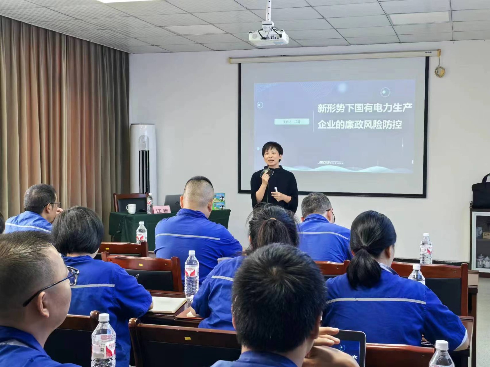 為全面提升電力生產(chǎn)企業(yè)的廉政風(fēng)險防范能力,筑牢電廠干部職工拒腐防變的思想防線,近日,百花灘黨支部承辦川投電力2024年第三季度“講廉規(guī) 守廉矩”三期廉潔教育輪訓(xùn)交流會,邀請洪雅縣紀(jì)委監(jiān)委駐財政局紀(jì)檢監(jiān)察組組長江碧,現(xiàn)場講授《新形勢下電力生產(chǎn)企業(yè)的廉政風(fēng)險》知識講座。