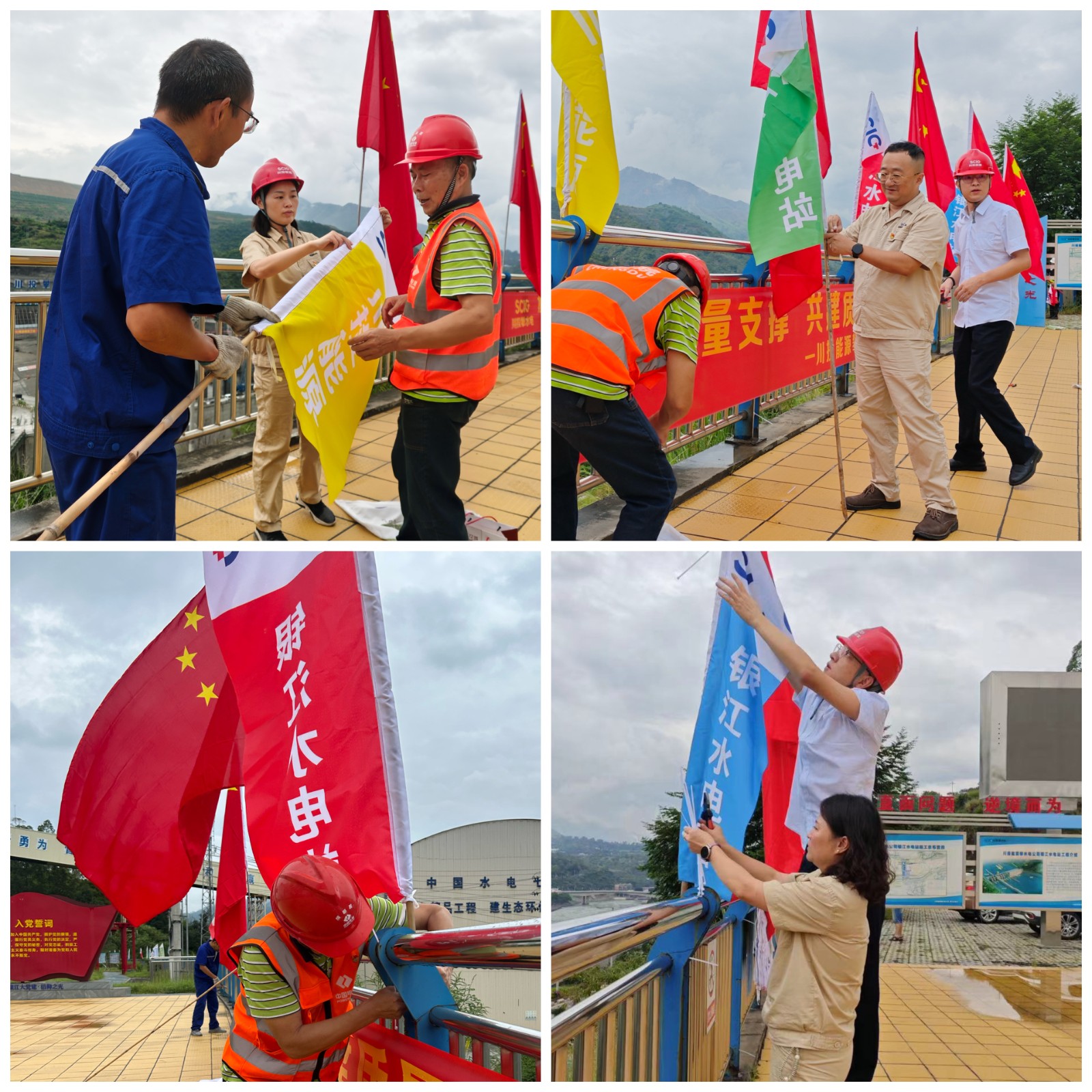 在大家的共同努力下,一面面嶄新鮮艷的五星紅旗,一幅幅絢麗的彩旗掛在黨建宣傳陣地和施工區(qū)域,紅旗彩旗與綠水青山交相輝映,隨著江風(fēng)襲來(lái)迎風(fēng)招展,構(gòu)成了金沙江畔的美麗畫卷。每名黨員都用勞動(dòng)之美迎接國(guó)慶節(jié)的到來(lái),用務(wù)實(shí)的工作作風(fēng)確保實(shí)現(xiàn)銀江水電站年底發(fā)電目標(biāo),用實(shí)際行動(dòng)向祖國(guó)母親75歲華誕獻(xiàn)禮。
