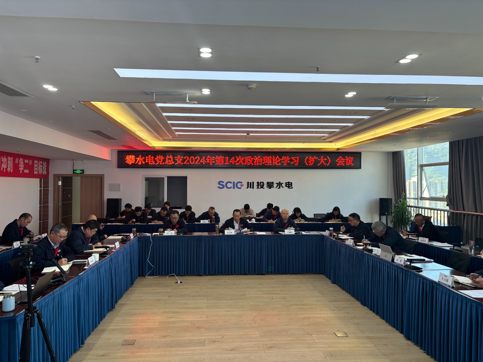 為深入貫徹落實(shí)習(xí)近平總書記近期重要講話精神,樹牢安全環(huán)保和廉潔從業(yè)精神,近日,攀水電黨總支在公司2620會(huì)議室召開了2024年第14次政治理論學(xué)習(xí)(擴(kuò)大)會(huì)議,學(xué)習(xí)第一議題、上級(jí)會(huì)議、文件、安全環(huán)保、廉政警示教育等相關(guān)內(nèi)容。川投能源副總經(jīng)理、攀水電公司黨總支書記、董事長(zhǎng)徐孝剛主持會(huì)議,攀水電公司黨員干部、統(tǒng)戰(zhàn)對(duì)象、入黨積極分子共30余人參加學(xué)習(xí)。