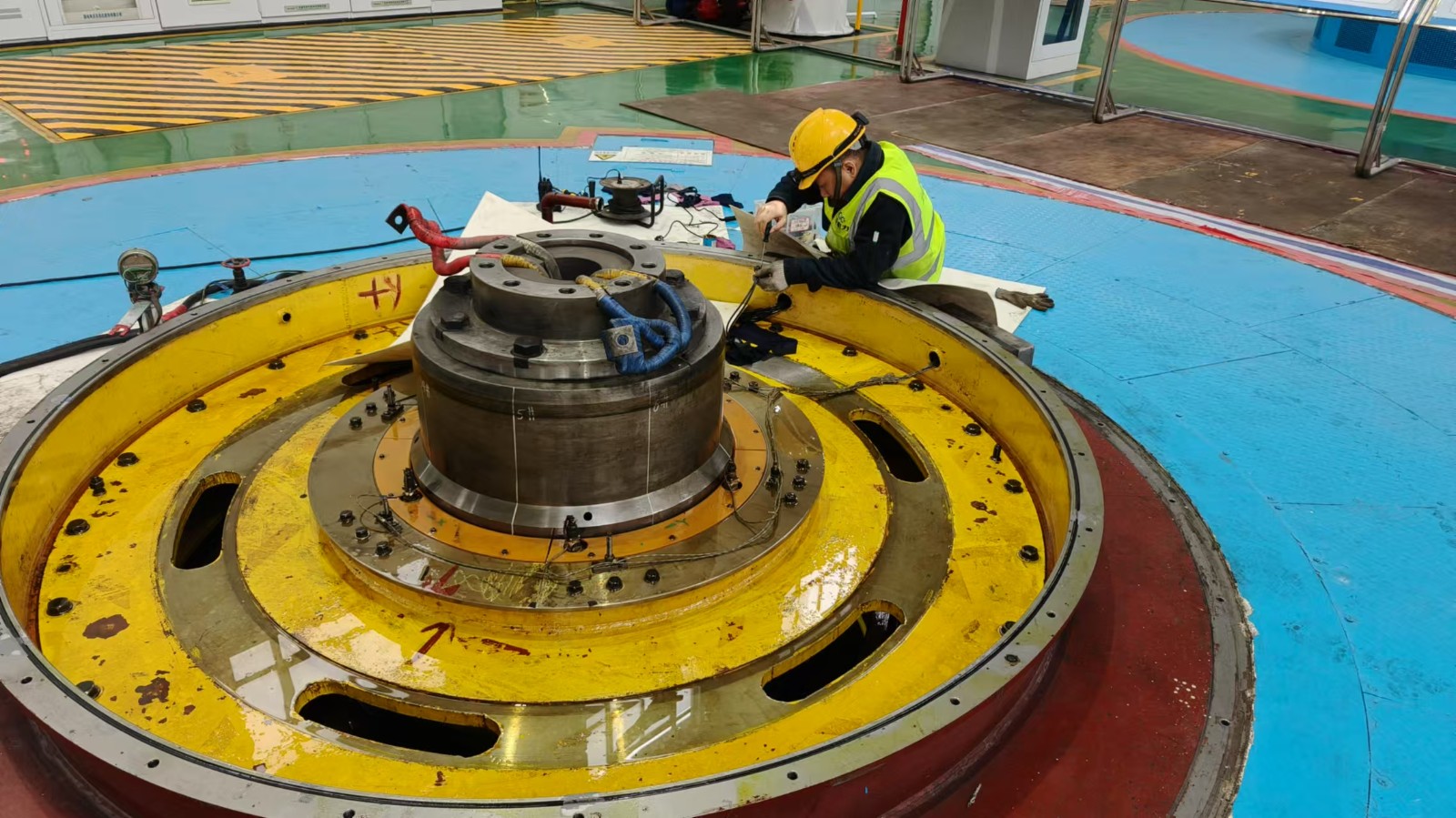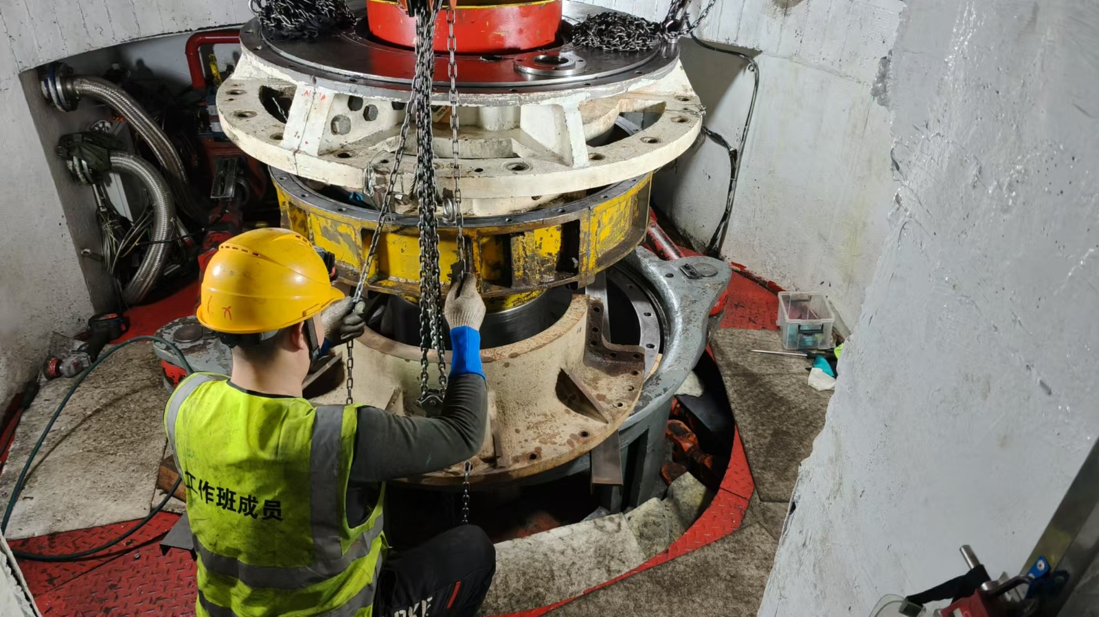 面對檢修時間緊、任務(wù)重的雙重挑戰(zhàn),腳基坪電廠檢修團隊在專業(yè)素養(yǎng)和團隊作戰(zhàn)上展現(xiàn)出了川投電力“星光成炬,攥指成拳,合力致遠”的實力擔當。黨建引領(lǐng),攻堅克難。腳基坪電廠充分發(fā)揮黨支部戰(zhàn)斗堡壘作用和黨員的先鋒模范作用,黨員們亮身份、樹表率,以身作則,團結(jié)引領(lǐng)檢修團隊攻堅克難,主動承擔更多責任與任務(wù)。堅持嚴字當頭、真抓實干,為確保檢修工期,不計個人得失,主動加班加點,為檢修工作的順利完成貢獻力量。精心策劃,通力協(xié)作。檢修啟動之初,檢修團隊根據(jù)機組的實際情況和檢修需求,制定了詳細的檢修計劃和方案,秉承“應修必修,修必修好”的原則,確保每一項工作都能有條不紊地進行。同時,團隊成員之間通力協(xié)作,形成了緊密的工作合力,共同應對檢修過程中的各種挑戰(zhàn)。自主檢修,提質(zhì)增效。“自己的機組自己修,心里才更有底?!本S護部經(jīng)理晉兆鵬表示。腳基坪電廠檢修團隊充分發(fā)揮自主檢修優(yōu)勢,在檢修過程中,發(fā)現(xiàn)并處理了集電環(huán)、轉(zhuǎn)輪葉片、尾水管補氣環(huán)道等潛在的安全隱患,針對機組存在的實際問題,實施了一系列技術(shù)改造項目。累計完成檢修項目15項,消除隱患5項,完成技術(shù)改造4項。