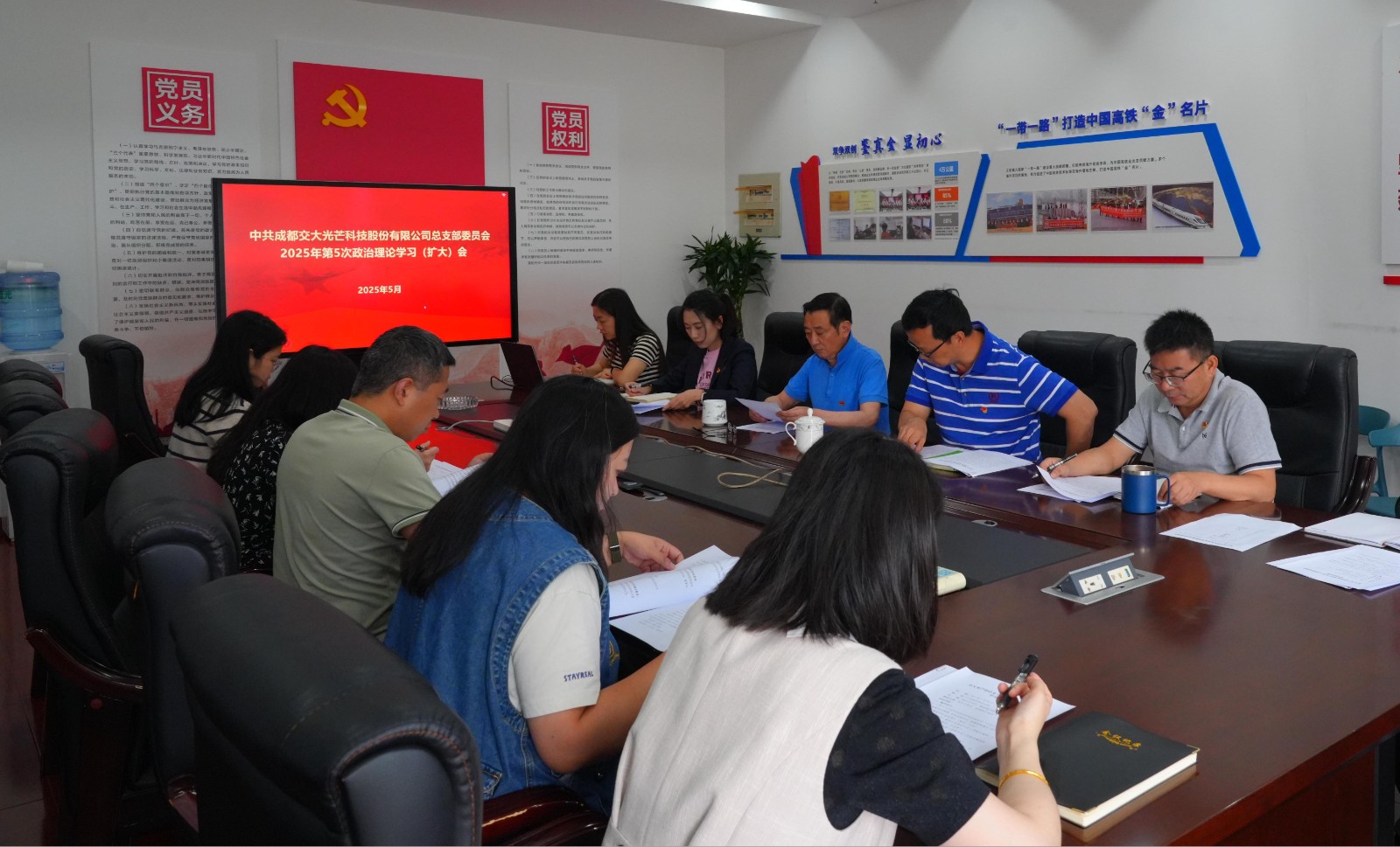 5月26日,交大光芒黨總支召開2025年第5次政治理論學(xué)習(xí)會(huì)。會(huì)議由黨總支書記、常務(wù)副總經(jīng)理王濤主持,黨總支委員、經(jīng)營班子成員以及各支部委員、黨群工作部、紀(jì)檢工作部負(fù)責(zé)人參加學(xué)習(xí)。