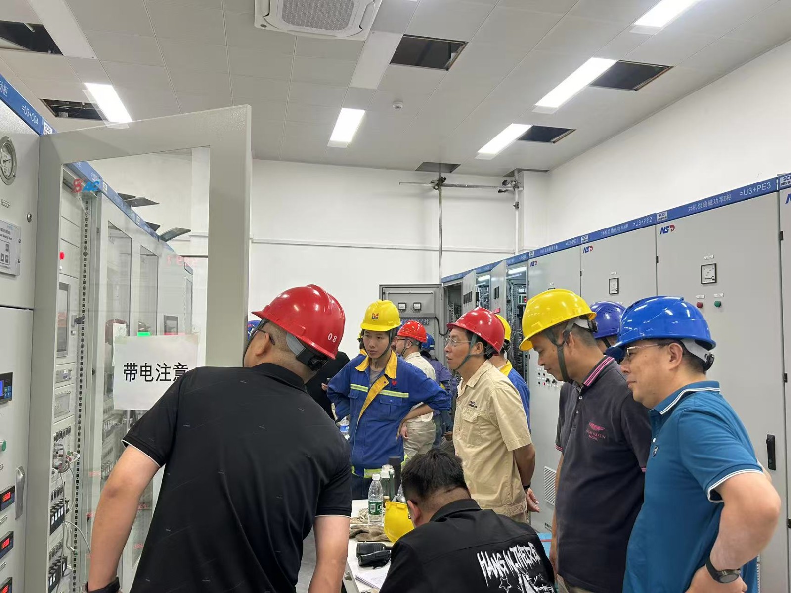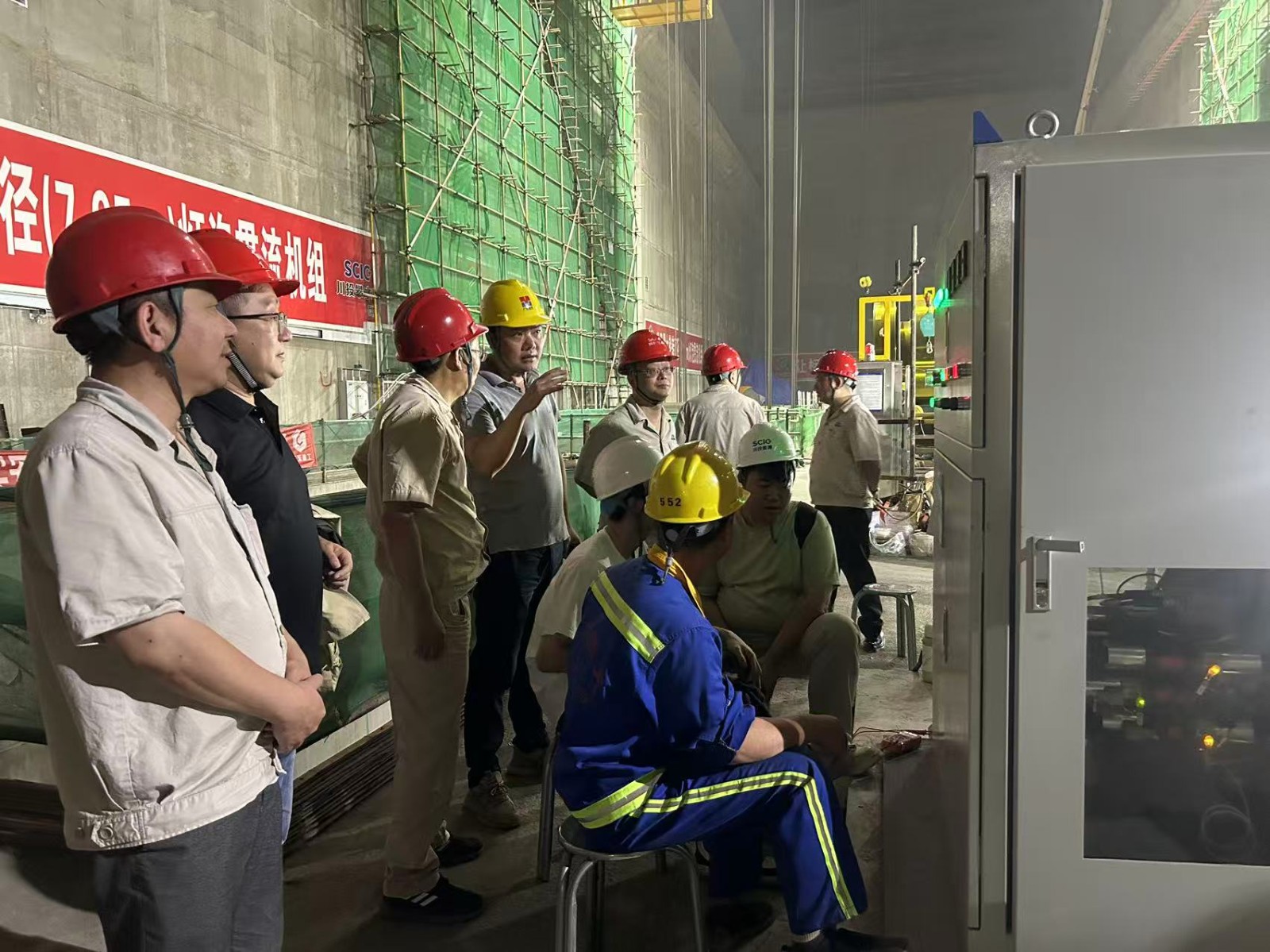 2025年攀枝花汛期比往年來的更早一些,為保障銀江水電站順利度汛和后續(xù)機(jī)組順利安裝,5月31日3號機(jī)組必須完成開機(jī)啟動,具備過流條件。為此,進(jìn)入5月以來,公司帶領(lǐng)各參建單位日夜奮戰(zhàn)在施工現(xiàn)場,實行公司領(lǐng)導(dǎo)承包劃片進(jìn)行工作督導(dǎo),施工現(xiàn)場經(jīng)常深夜還能看見公司領(lǐng)導(dǎo)現(xiàn)場忙碌的身影,經(jīng)過不懈努力先后完成了3號機(jī)組主機(jī)、輔機(jī)、調(diào)速器、機(jī)組油、氣和水系統(tǒng)、計算機(jī)監(jiān)控系統(tǒng)、勵磁系統(tǒng)、繼電保護(hù)系統(tǒng)等設(shè)備的安裝調(diào)試工作。5月30日隨著尾水事故閘門充水閥緩慢打開,3號機(jī)組流道開始充水,5月31日檢查燈炮體、管形座、流道蓋板、導(dǎo)水機(jī)構(gòu)及各排水閥等各部位正常,3號機(jī)組各系統(tǒng)單體、聯(lián)調(diào)正常,隨著指揮長徐孝剛一聲令下,3號機(jī)組手動啟動,并成功升速至100%額定轉(zhuǎn)速,機(jī)組振動、擺度、瓦溫等各項指標(biāo)優(yōu)良,機(jī)組運(yùn)行狀態(tài)穩(wěn)定,首次啟動成功。