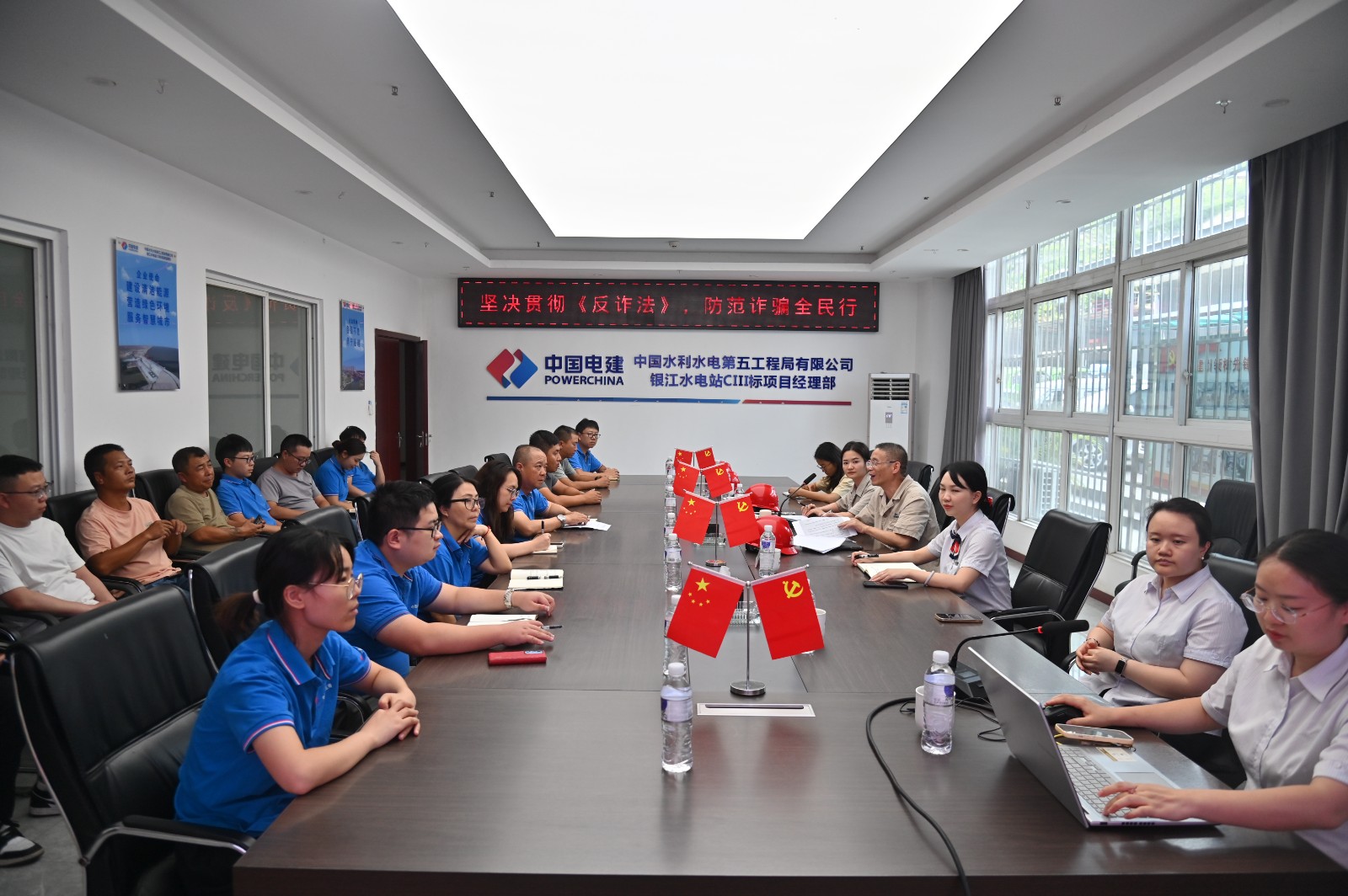 按照省金融辦及省國(guó)資委相關(guān)要求,川投能源所屬攀水電公司結(jié)合自身實(shí)際,于6月19日聯(lián)合中國(guó)銀行金曦苑支行到銀江水電站參建單位工地開(kāi)展防范非法金融活動(dòng)相關(guān)宣講。中國(guó)銀行金曦苑支行行長(zhǎng)羅欣及相關(guān)人員,攀水電公司資金財(cái)務(wù)部、綜合管理部及相關(guān)人員,水電五局銀江項(xiàng)目部員工及建設(shè)一線工人共計(jì)30余人參加活動(dòng)。