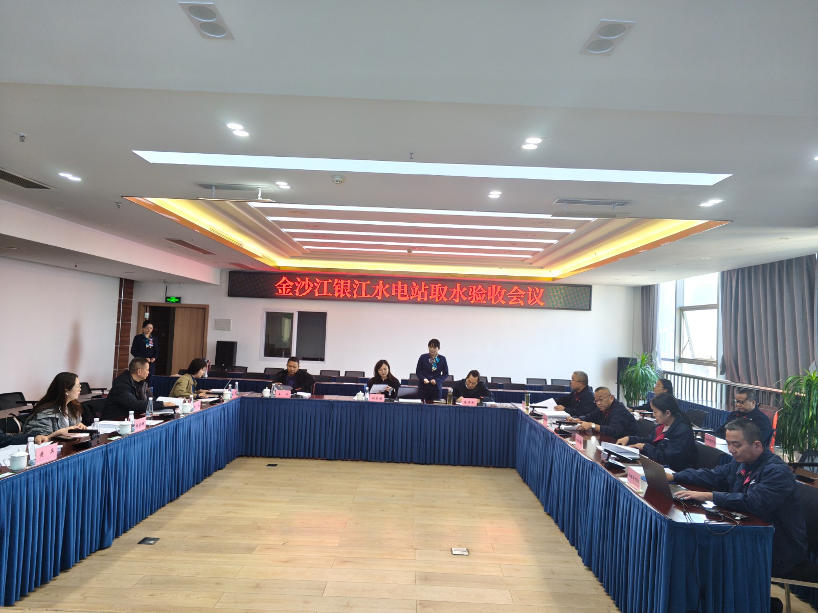 隨后,驗收組召開驗收會議。會議期間,驗收組詳細審閱了銀江水電站取水驗收工作報告,聽取了公司工程建設及取水設施相關情況匯報,對取水申請批復意見落實情況進行復核,并與各參會單位進行了充分的討論和交流,形成了金沙江銀江水電站取水驗收意見,一致同意金沙江銀江水電站通過取水驗收,在完善取水報告有關資料后核發取水許可證。