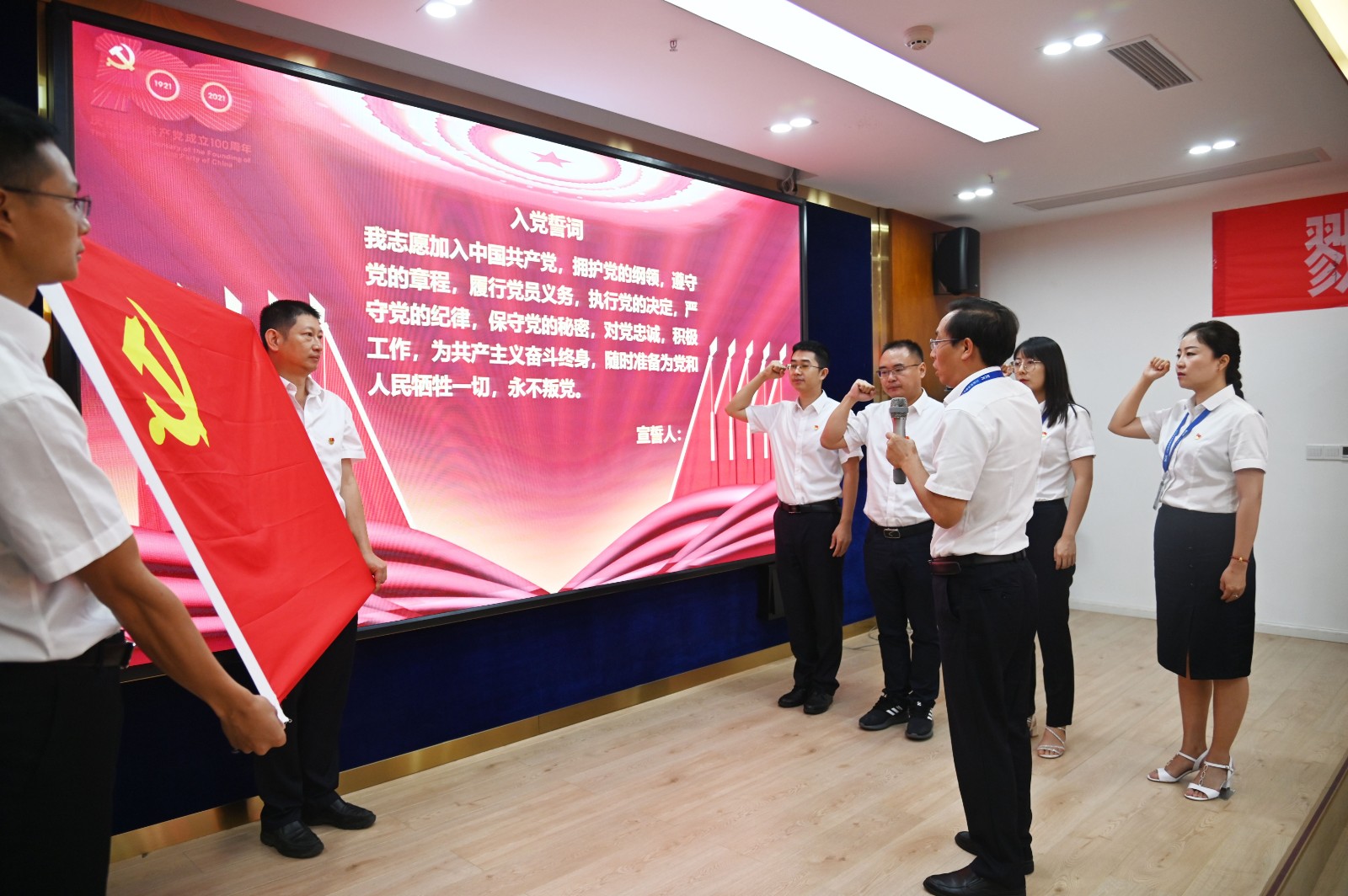 大會(huì)在雄壯的國(guó)歌聲中拉開(kāi)帷幕,與會(huì)人員一起觀看建黨百年微視頻《路》,共同回顧了中國(guó)共產(chǎn)黨帶領(lǐng)全國(guó)人民艱苦卓絕走過(guò)的這條跨越百年、走向復(fù)興的光輝道路。隨后正式發(fā)布了公司首部宣傳片。黨總支委員、副總經(jīng)理吳巍嶼和副總經(jīng)理周軍分別傳達(dá)了川投集團(tuán)、川投能源慶祝建黨100周年暨“七一”表彰大會(huì)精神。隨后,由徐孝剛領(lǐng)誓,新黨員進(jìn)行了入黨宣誓,全體黨員一起重溫了入黨誓詞。