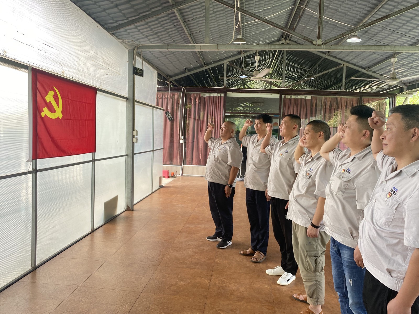 最后,陳忠代表公司黨總支向退役軍人送上了節(jié)日的問候和祝福,激勵(lì)大家退役不褪色,永遠(yuǎn)跟在鮮紅的黨旗下。在陳忠的領(lǐng)誓下,公司退役軍人面向鮮紅黨旗高舉右拳,莊嚴(yán)重溫了入黨誓詞,伴隨著雄壯的宣誓聲,本次座談會(huì)圓滿結(jié)束。